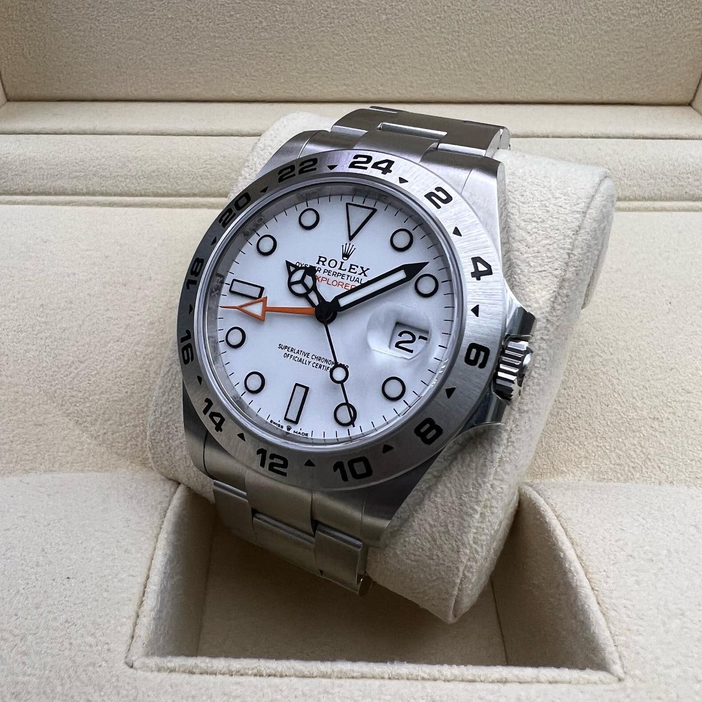 Rolex Explorer sở hữu thiết kế thời trang với chất liệu thép không gỉ. Mặt đồng hồ dù tối giản nhưng vẫn tạo sức hút nhờ các số chạy dọc bên rìa mặt kính. Chiếc đồng hồ thời trang này có bộ máy di động và tự động, giúp khả năng chống nước lên đến 100 mét.