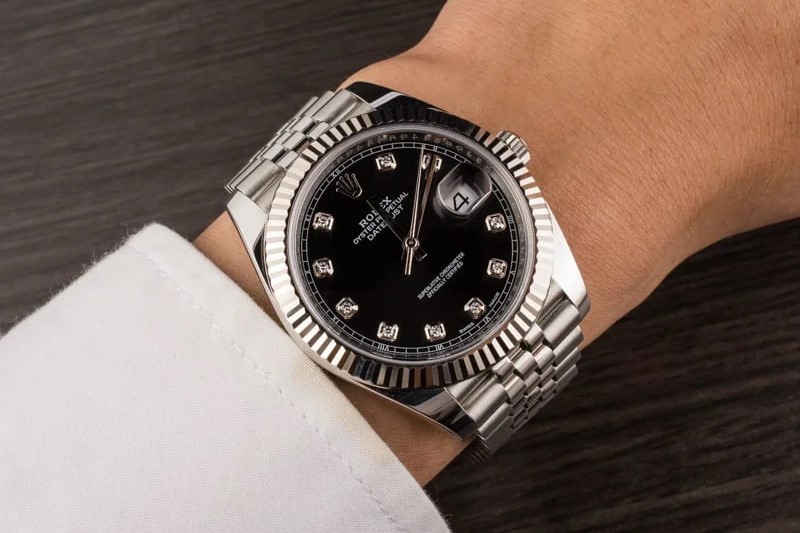 Đồng Hồ Rolex 126334 Datejust 41mm White Gold Steel Black Diamond Dial Fluted Bezel Jubilee - Giá 315 triệu đồng;