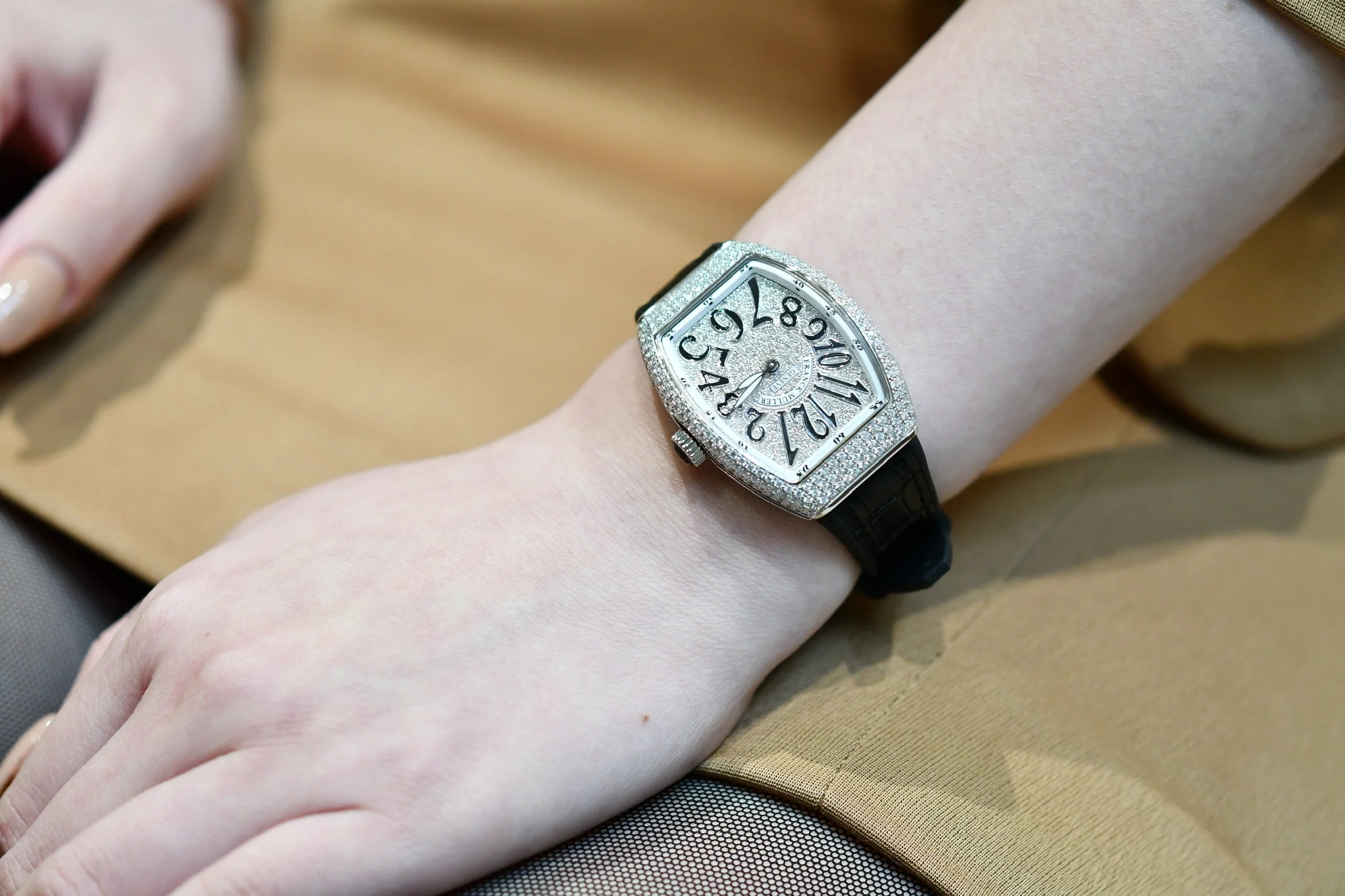 Một lí do khác nữa mà khiến cho chị em phụ nữ đứng ngồi không yên khi nhìn thấy những chiếc đồng hồ Franck Muller đó là chất liệu và giá thành của nó. Ngoài phần dây được làm từ da cá sấu hay cao su tự nhiên thì phần mặt đồng hồ là nơi được tập trung nhiều chất liệu quý giá nhất, từ kim cương, đá quý đến vàng trắng, vàng hồng,... Chính vì thế mà giá của những chiếc đồng hồ này cũng không hề nhỏ chút nào. Cụ thể ra sao thì mời bạn đọc tiếp phần sau nhé.
