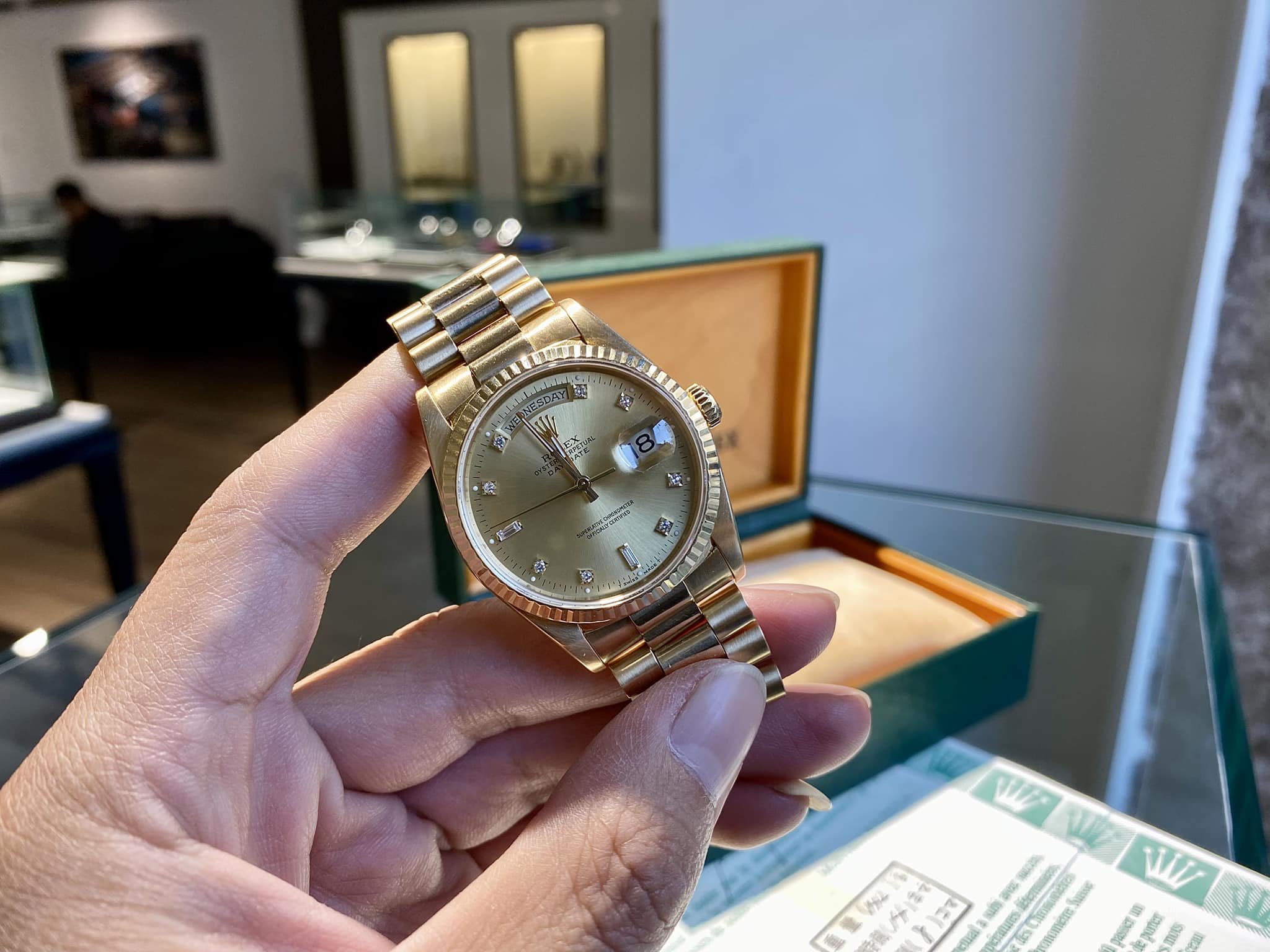 Rolex 18238 Day-Date President cọc kim cương vàng khối 18k |