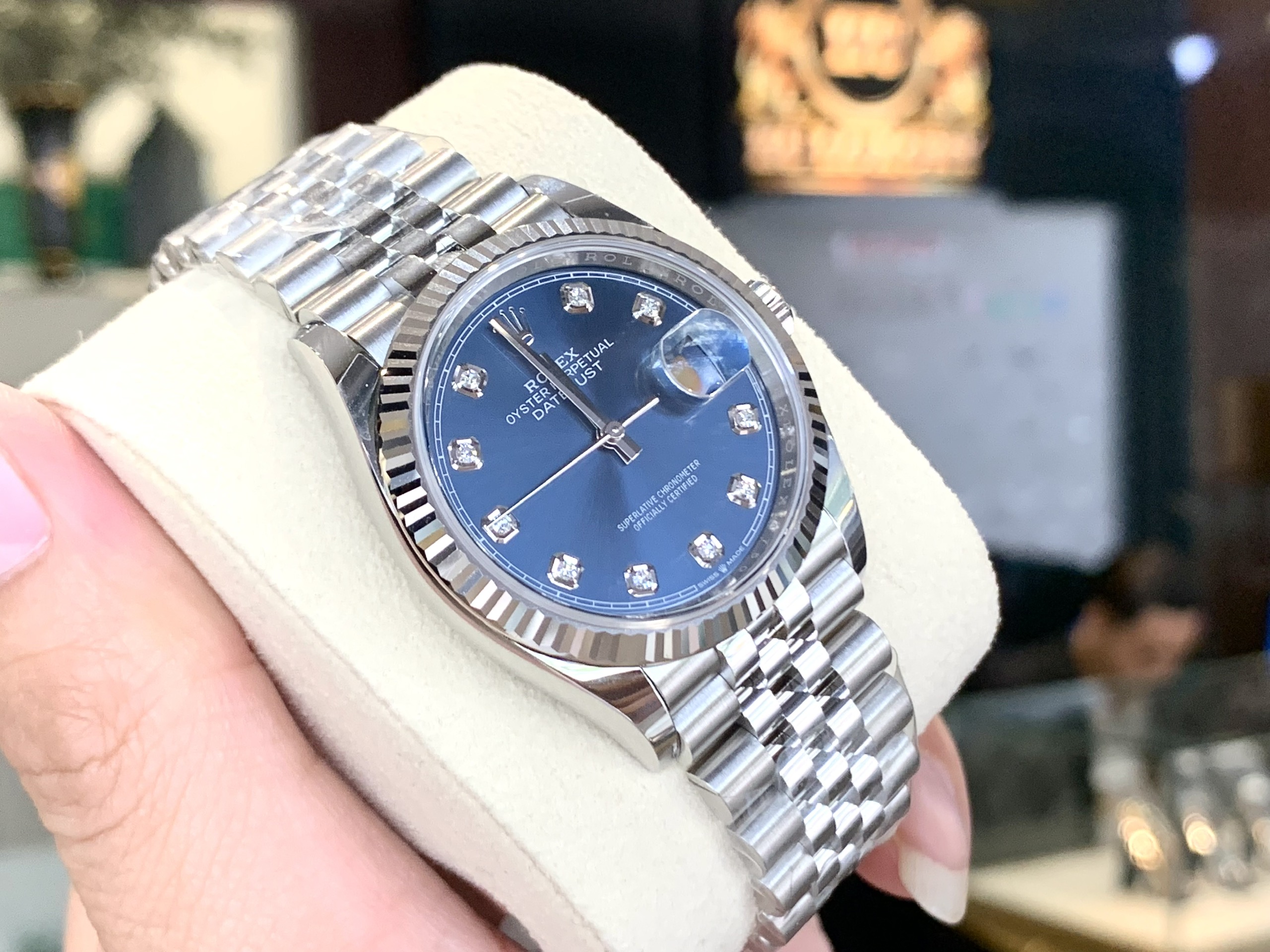 Một trong những công cụ làm nên thương hiệu của đồng hồ Rolex thép còn là biểu tượng đồng hồ sang chảnh, lịch lãm, màu xanh lam. Được lấy cảm hứng từ đá thiên thạch. Các nhà phát triển Rolex đã tạo nên bước đột phá cho thương hiệu đồng hồ khi đính liền trên đó biểu tượng bạch kim sang trọng. Rolex cũng là nhãn hàng đi đầu thế giới về sản xuất đá quý. Công ty có bộ phận chuyên về đá quý để nghiên cứu, sáng tạo, đặt mua và kiểm tra những mẫu mới nhất. Đảm bảo mỗi chiếc Rolex thép được tạo ra trên thị trường đều là những mẫu có một không hai.