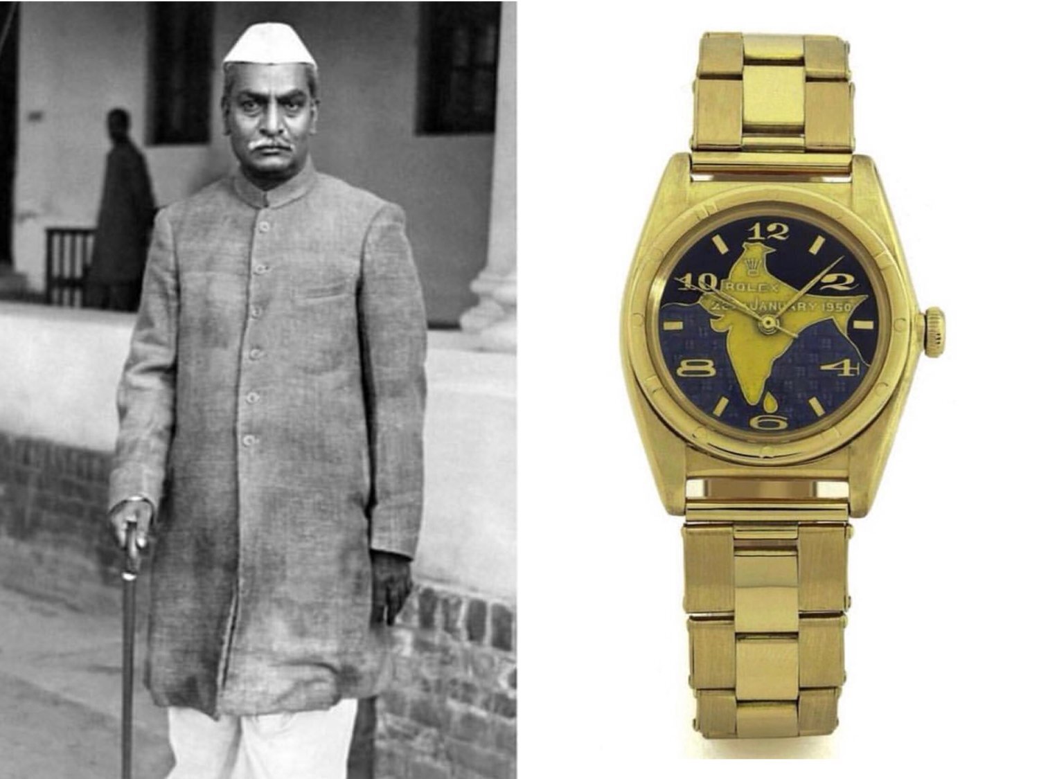 Giá trị của chiếc đồng hồ Rolex Oyster là một con số khiến người ta choáng ngợp - 440.000 USD. Đây là chiếc đồng hồ từng được ổng thống đầu tiên của Ấn Độ Dr. Rajendra Prasad sở hữu và đương nhiên nó nằm trong bộ sưu tập những chiếc Rolex đắt nhất thế giới. Điểm đặc biệt của chiếc đồng hồ này là mặt đồng hồ bằng vàng 18 carat và được in hình của đất nước Ấn Độ.