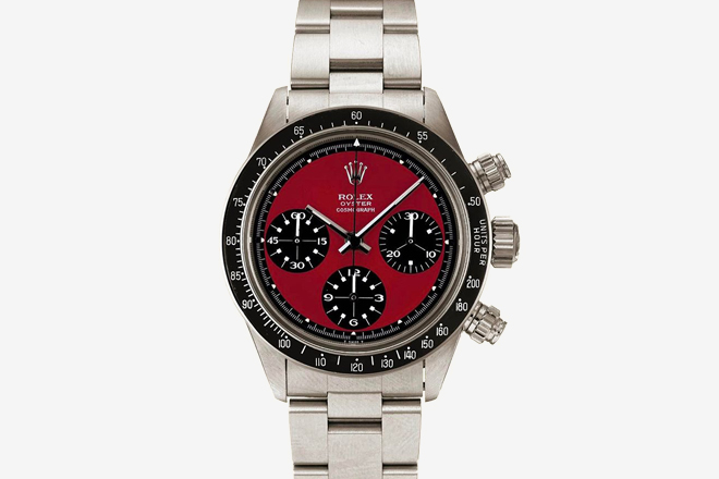 Điểm làm nên sự đặc biệt của chiếc đồng hồ này đó là nó từng được nam diễn viên người Mỹ Paul Newman sở hữu. Giá trị của chiếc Ferrari Red Rolex Daytona hiện nay lên đến 267.203 USD.