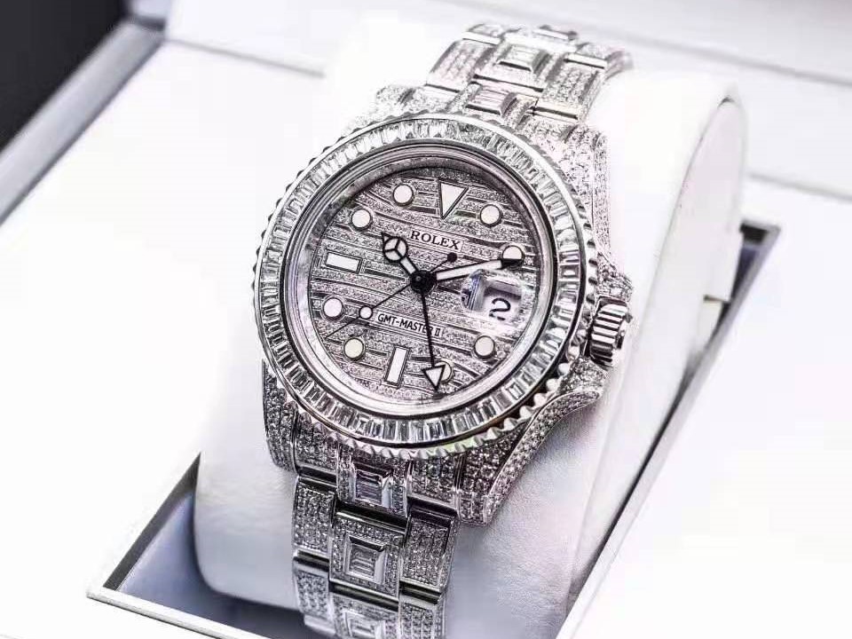 Chiếc đồng hồ này được gắn kim cương vô cùng tinh xảo, độ xa xỉ của nó còn bởi phần dây đeo được dát vàng trắng 18 carat và cũng được gắn full kim cương.