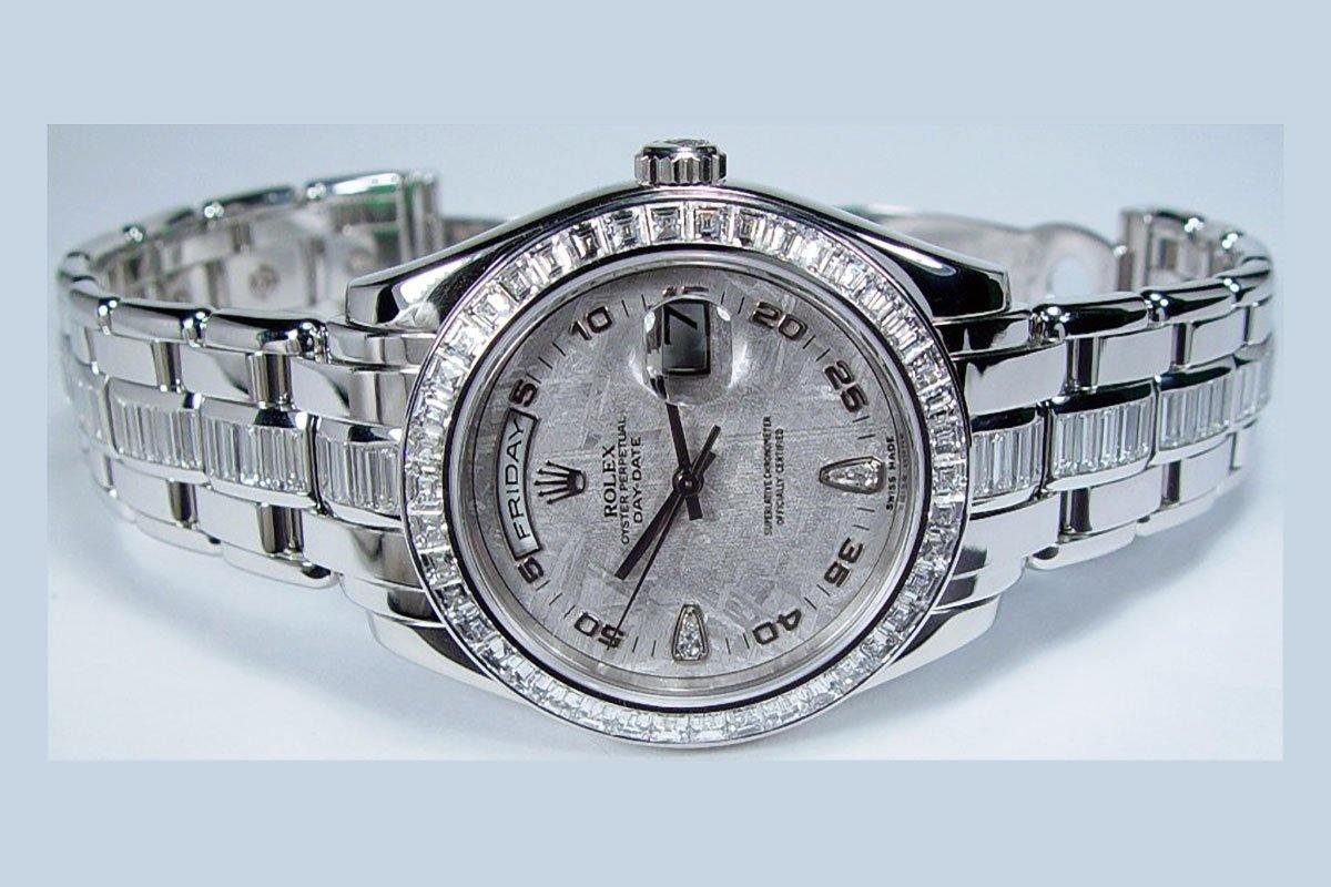 Chiếc đồng hồ Platinum Pearlmaster 18956 được hãng sản xuất năm 2016. Đây là bản model được trang trí bằng kim cương sang trọng bậc nhất. Giá trị của chiếc đồng hồ Rolex nam này lên tới 276.000 USD.