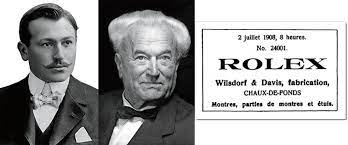 Năm 1905, một người đàn ông trẻ tên là Hans Wilsdorf hợp lực với anh rể của mình, Alfred James Davis (người đã kết hôn với Ana Wilsdorf) để thành lập một công ty đồng hồ ở London, Anh. có tên là Wilsdorf and Davis, chuyên phân phối đồng hồ đeo tay không chỉ ở Anh mà còn trên toàn đế quốc Anh. Ba năm sau, vào ngày 2 tháng 7 năm 1908, Wilsdorf và Davis đăng ký nhãn hiệu "Rolex" tại Thụy Sĩ và nhãn hiệu "Rolex" sau đó đã được đăng ký quốc tế vào năm 1913. Mặc dù nhãn hiệu Rolex đã được đăng ký vào năm 1908, nhưng cái tên này không xuất hiện ngay lập tức. trên đồng hồ, vì các nhà bán lẻ thường muốn đặt tên của họ trên những chiếc đồng hồ không được bán. họ đã chào bán chúng. Cuối cùng, ông đã xây dựng thương hiệu với ngày càng nhiều đồng hồ mang tên Rolex, và khi chiếc đồng hồ Oyster chống thấm nước huyền thoại ra mắt vào năm 1926, Wilsdorf quyết định rằng tất cả đồng hồ của mình sẽ là như vậy: trở nên tự hào khi đặt tên Rolex trên mặt số, vỏ và bộ chuyển động.