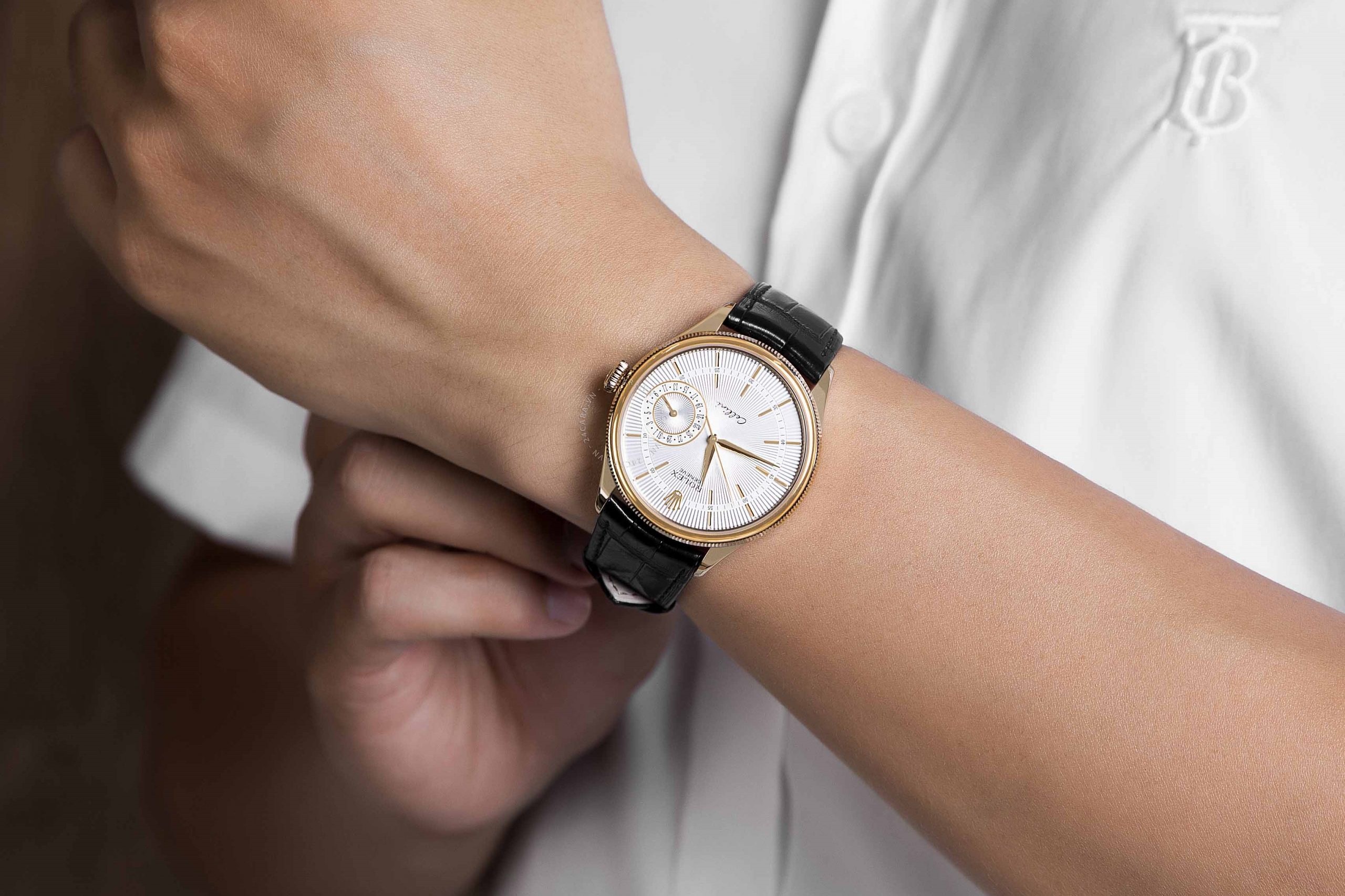 Các tín đồ của đồng hồ dây da chắc chắn không thể bỏ qua Oyster Cellini Date 39mm 50515-003. Nó mang vẻ đẹp cổ điển từ bộ dây cá sấu cùng mặt đồng hồ màu trắng đường kính 39mm. Bộ kim được vót mảnh ở đầu tạo nên sự quyền lực và thời thượng. Hiện sản phẩm đang được bán với mức giá 410 triệu đồng, nằm trong phân khúc tầm trung của Rolex.