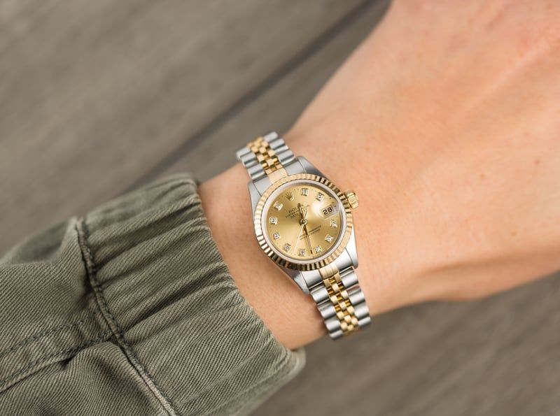 Thiết kế Datejust đầu tiên được ra mắt vào năm 1945 và dành riêng cho nam giới. Với một số cải tiến sau đó dẫn đến việc sản xuất Datejust 31 cỡ trung, bộ sưu tập tiếp tục kết hợp các biến thể của phụ nữ với các kích cỡ vỏ 26mm trên đồng hồ truyền thống và 28mm trên đồng hồ mới hơn. Mặc dù có cấu hình nhỏ hơn nhưng mặt số vẫn đủ lớn để mọi người có thể đọc.