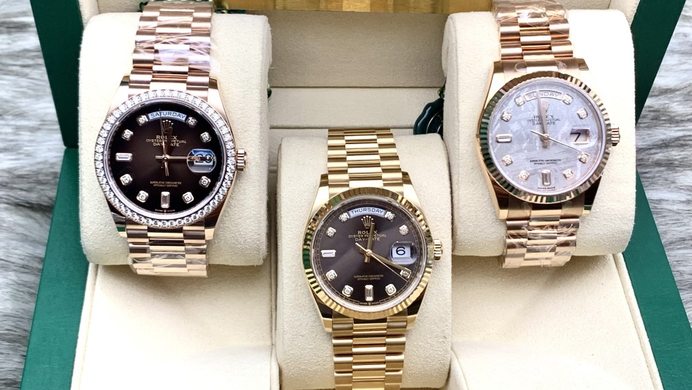 Không thể nói về những chiếc Rolex nữ tốt nhất mà không bao gồm Day-Date. Đây có thể là mẫu đồng hồ danh giá nhất của Rolex. Đặc điểm phân biệt của Day-date là cửa sổ chỉ ngày và thứ ở trên cùng của mặt đồng hồ. Mẫu sản phẩm đặc biệt này đẹp ở sự đơn giản sang trọng. Với các chữ số la mã kiểu dáng đẹp xung quanh viền, chiếc đồng hồ này khó có thể thanh lịch hơn hoặc đẳng cấp hơn. Hiện nay, Day-Date có nhiều màu sắc như bạch kim, vàng hồng và vàng, mỗi loại có các biến thể quay số khác nhau và mức gái sẽ dao động từ 900 triệu- 2 tỷ đồng.