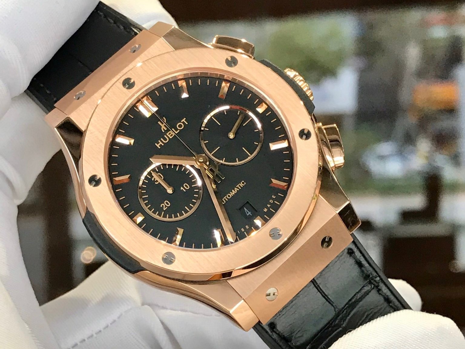 Đây là mẫu đồng hồ được các quý ông thượng lưu rất ưa chuộng. Nó có vẻ ngoài đơn giản nhưng rất sang trọng. Hublot đã cho thấy mắt thẩm mỹ tinh tế của mình khi khéo léo kết hợp ba màu đen - vàng hồng - bạc cho sản phẩm. Mặt số không có quá nhiều chi tiết cầu kỳ, tất cả đều được tối giản một cách tối đa. Bên dưới mốc giờ 12 là cái tên “Hublot” đầy tự mãn, như cái cách mà thương hiệu này đã thống trị thị trường trong suốt nhiều thập kỷ.