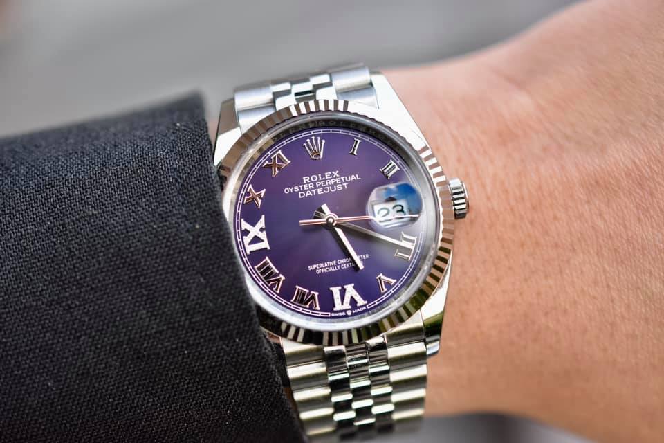 Là một sản phẩm thuộc dòng Datejust 31, sản phẩm đồng hồ Rolex Datejust Aubergine Diamond có mặt số màu tím ánh nắng độc đáo mang phong cách cổ điển và bắt mắt.