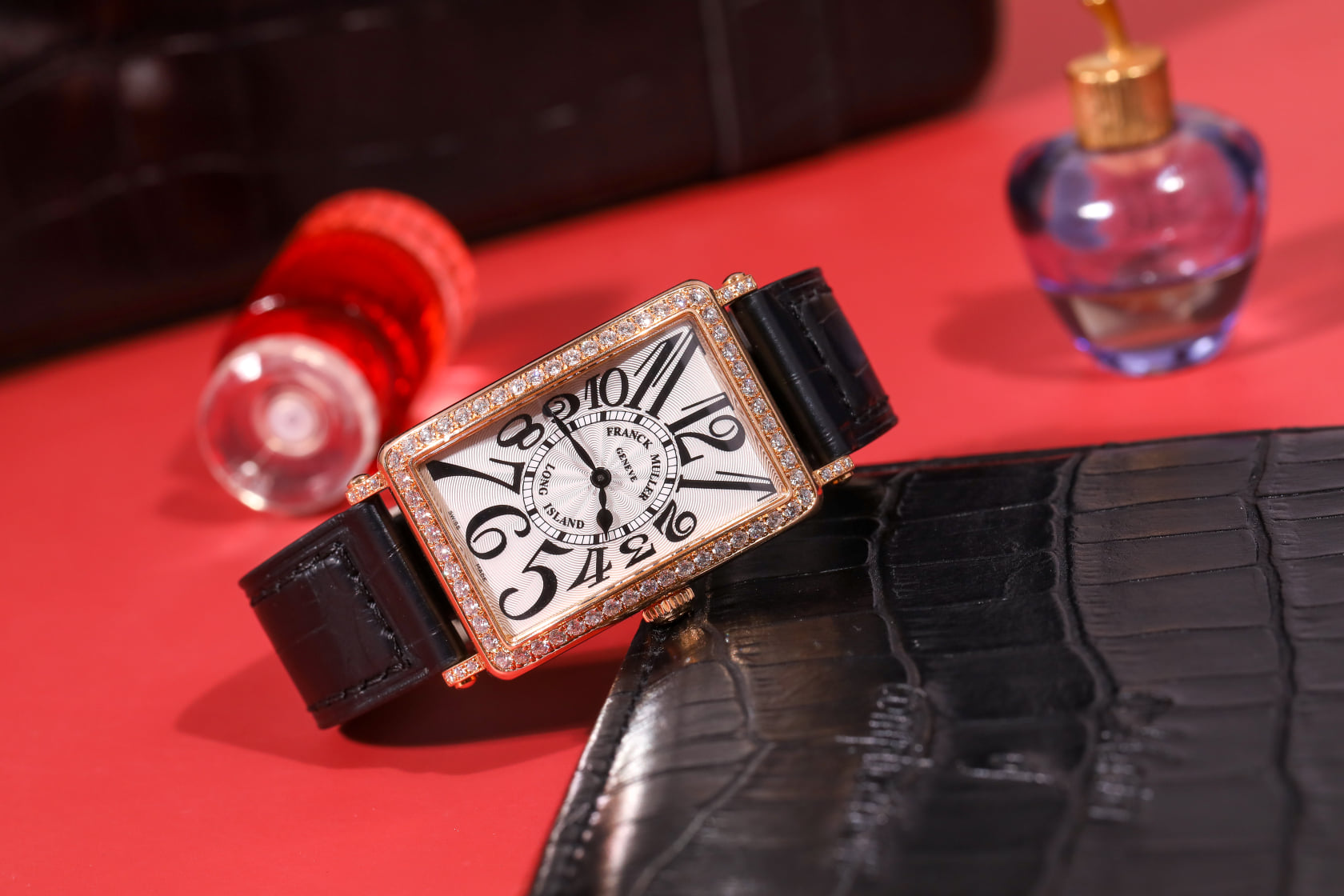 Ngoài ra để làm nổi bật sản phẩm thì hãng đã khéo léo sử dụng dây đeo cá sấu màu đen. Thiết kế tạo sự tương phản để nhằm nổi bật phần mặt đồng hồ kim cương lấp lánh. Mức giá cho sản phẩm hiện nay là 165 triệu đồng.