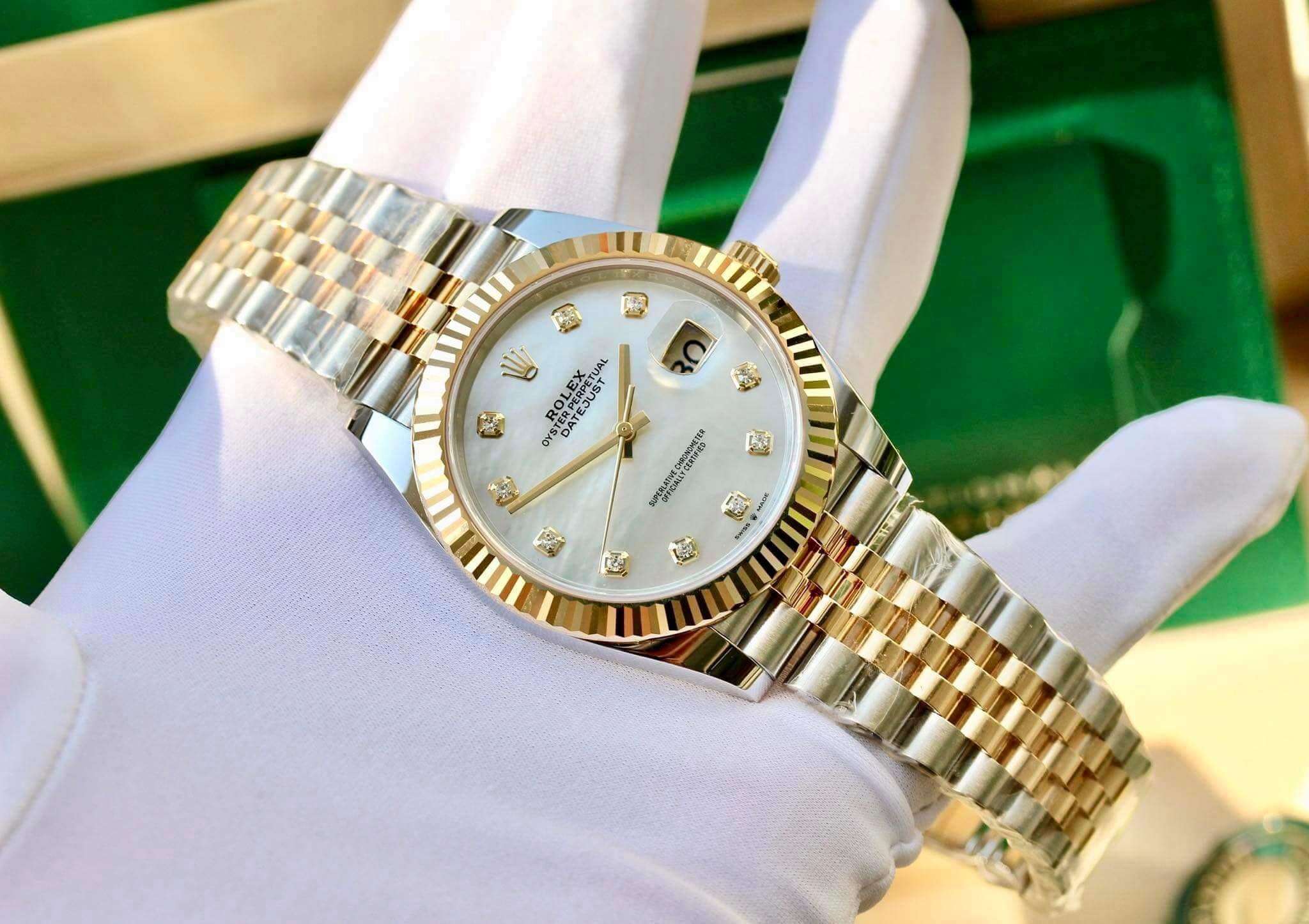 Rolex Datejust 126331 mặt đá xà cừ trắng nạm kim cương