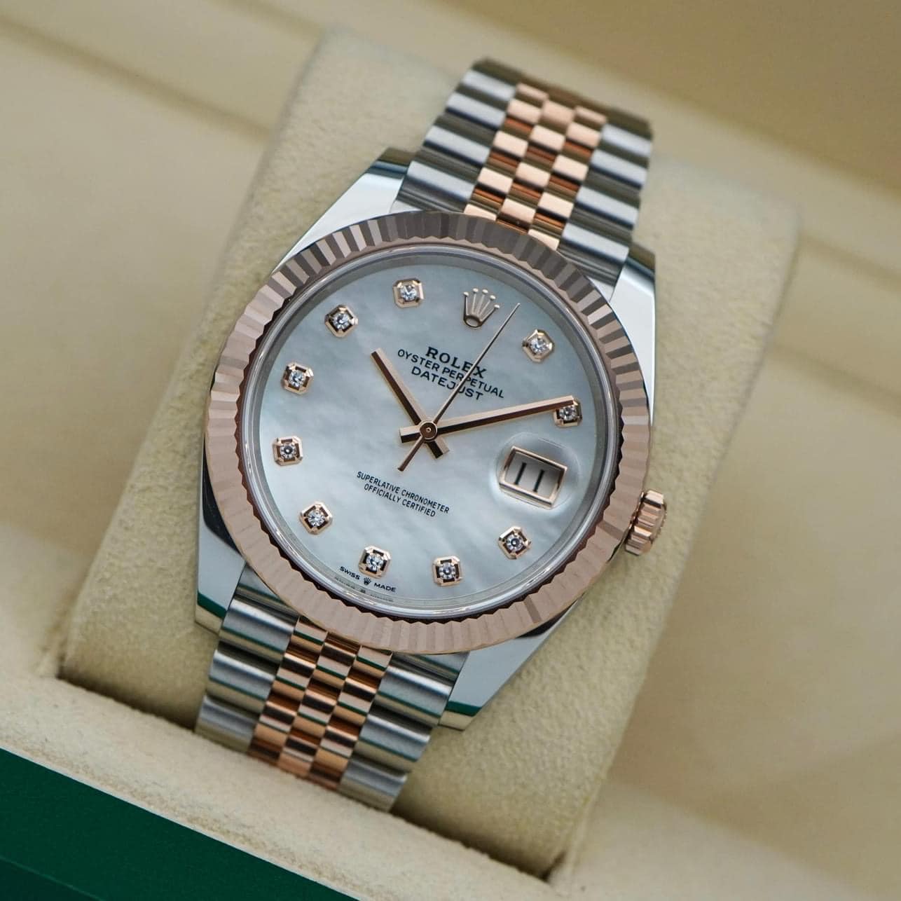 Siêu phẩm Datejust mã số 126331 mặt đá xà cừ trắng nạm kim cương là sự lựa chọn hàng đầu trong năm 2023. Sản phẩm nằm trong phân khúc tầm trung của bộ sưu tập đồng hồ phiên bản Datejust.