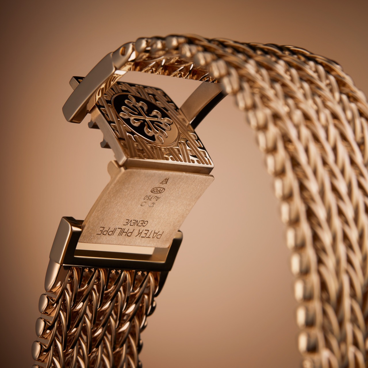 Lấy cảm hứng từ dòng đồng hồ Golden Ellipse ra mắt vào năm 1968, Patek Philippe chế tác phiên bản này với dây đeo tay bằng kim loại độc đáo, những mắt xích uốn lượn theo một trật tự hoàn hảo.