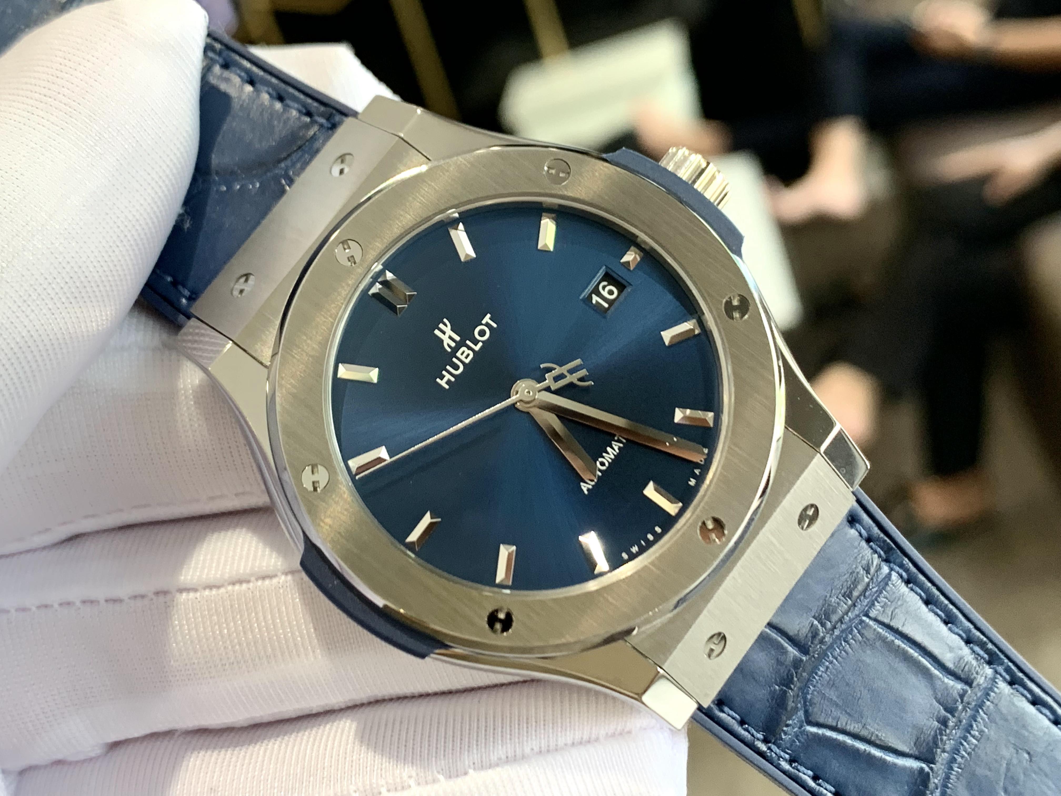 Nếu bạn đang cần mua đồng hồ Hublot nam giá tốt thì đây sẽ là một lựa chọn lý tưởng. Hublot Classic Fusion Blue Titanium với kích thước đường kính 38mm, mặt và dây màu xanh navy mang tới sự nam tính và cuốn hút cho bạn. Giá của nó cũng khá khiêm tốn chỉ 135 triệu đồng mà thôi.