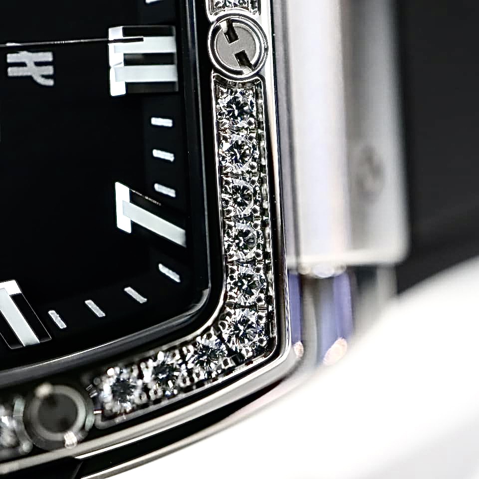 Đây là mẫu đồng hồ dành cho các quý cô với mức giá khá “dễ chịu” so với các sản phẩm khác nhà Hublot. Nó đang được bán với giá 135 triệu đồng tại EU Luxury. Mặt số đen huyền bí được bao quanh bởi phần vành đính kim cương tự nhiên làm nên sức quyến rũ cho chiếc đồng hồ này.