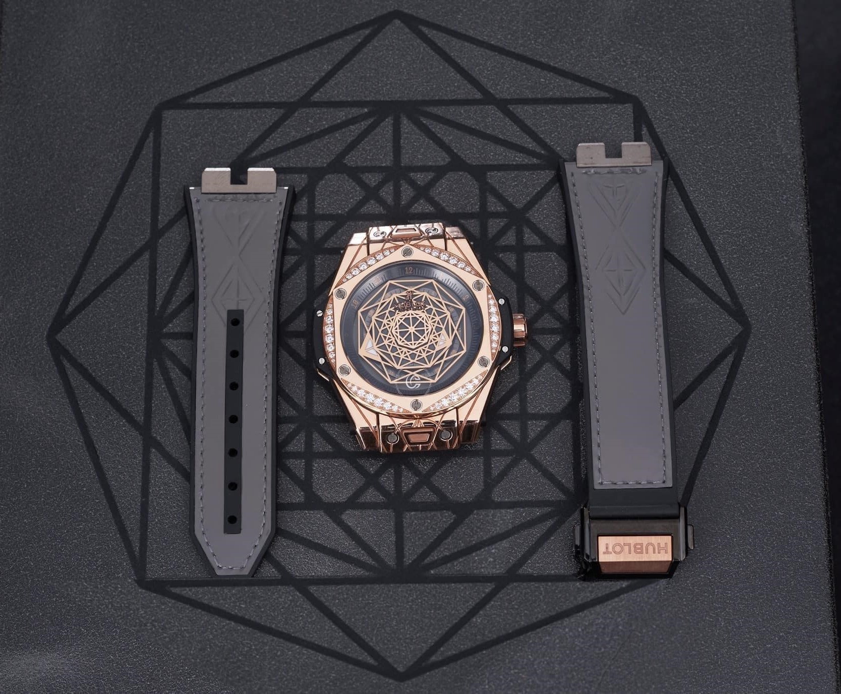 Dây đeo mà Hublot trang bị là dây đeo cao su cao cấp độc quyền của thương hiệu. Đây là thiết kế độc quyền của Hublot và được đông đảo khách hàng đánh giá rất cao về tính hiệu quả của nó.