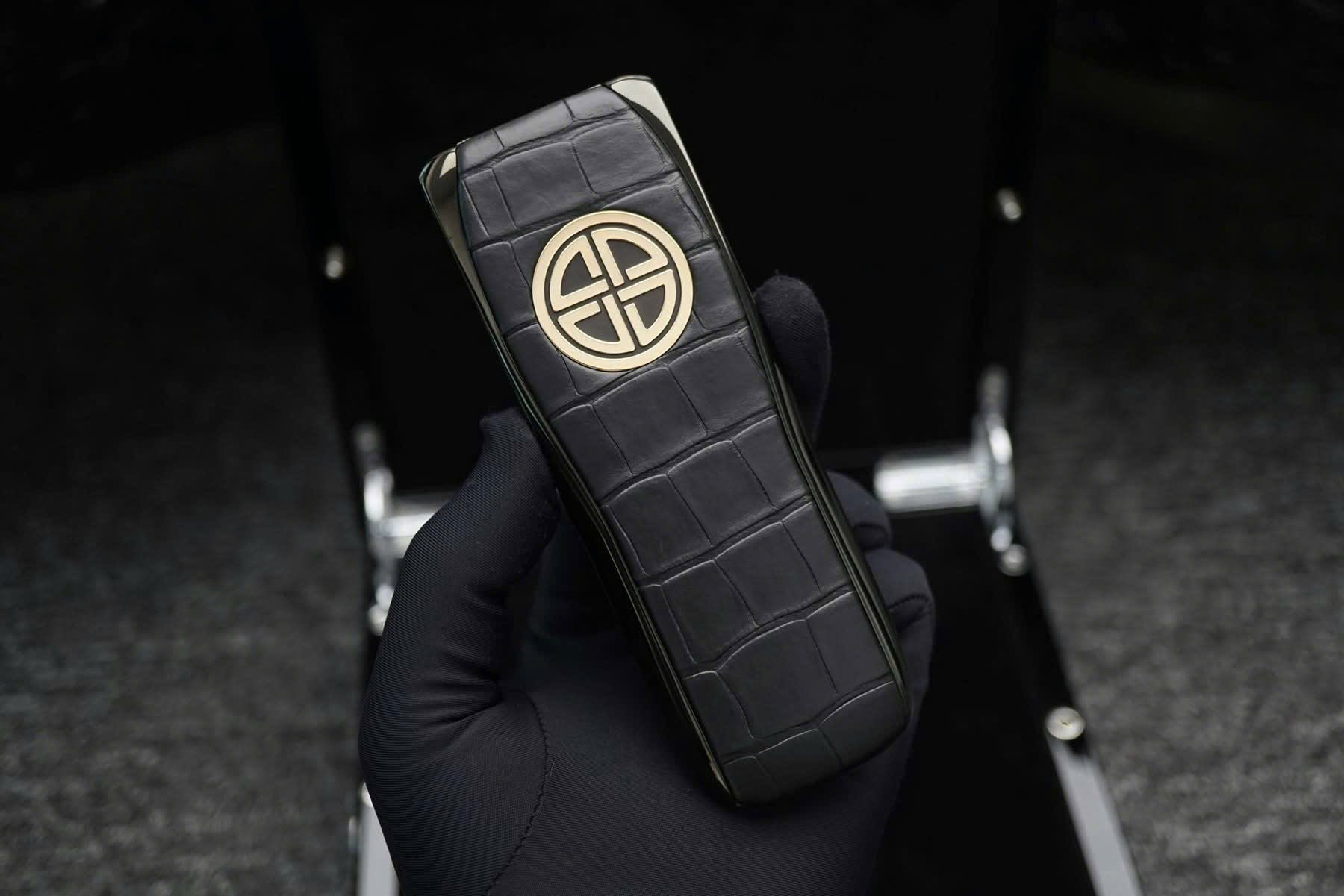 Điểm đầu tiên khiến tôi bị ấn tượng chính là thiết kế của chiếc XOR vàng nguyên khối. Máy có thiết kế nhỏ gọn, dễ dàng cầm nắm nhưng lại vô cùng tinh tế và sang trọng. Các đường cong mềm mại được chế tác thủ công tỉ mỉ từ các nghệ nhân, mang đến sự hoàn hảo trong từng chi tiết. Phần mặt lưng của máy được bọc bằng da cá sấu, một chất liệu quý hiếm và sang trọng, tạo nên cảm giác quyền lực cho người sử dụng.