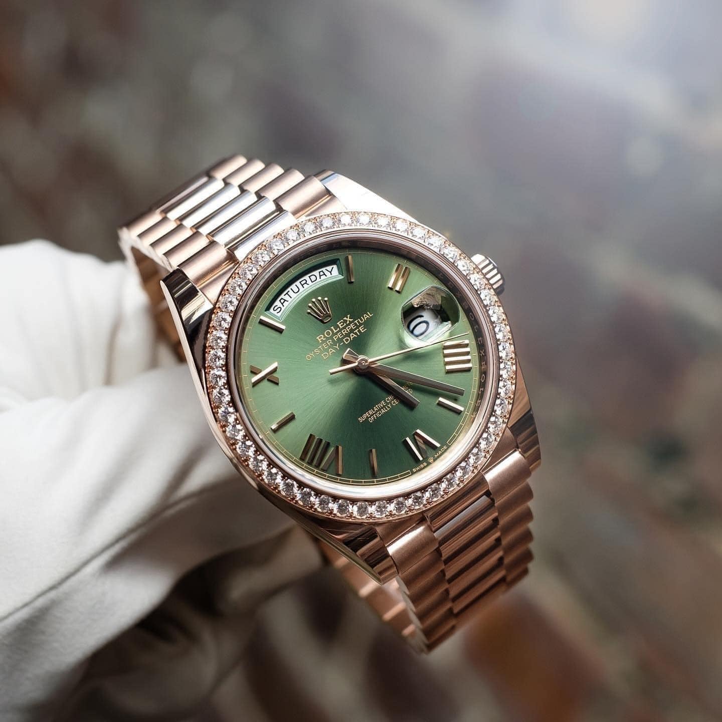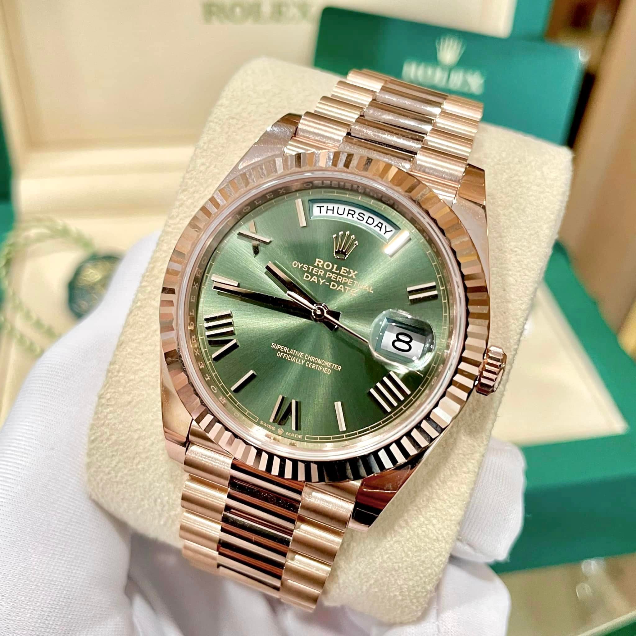 3.3. Rolex President 40mm Everose Gold & Green Dial