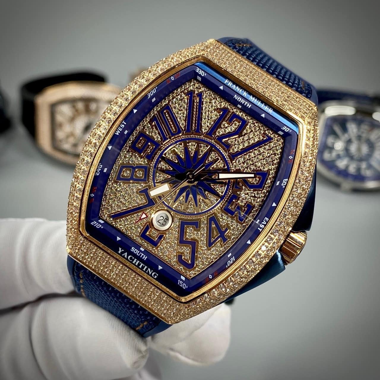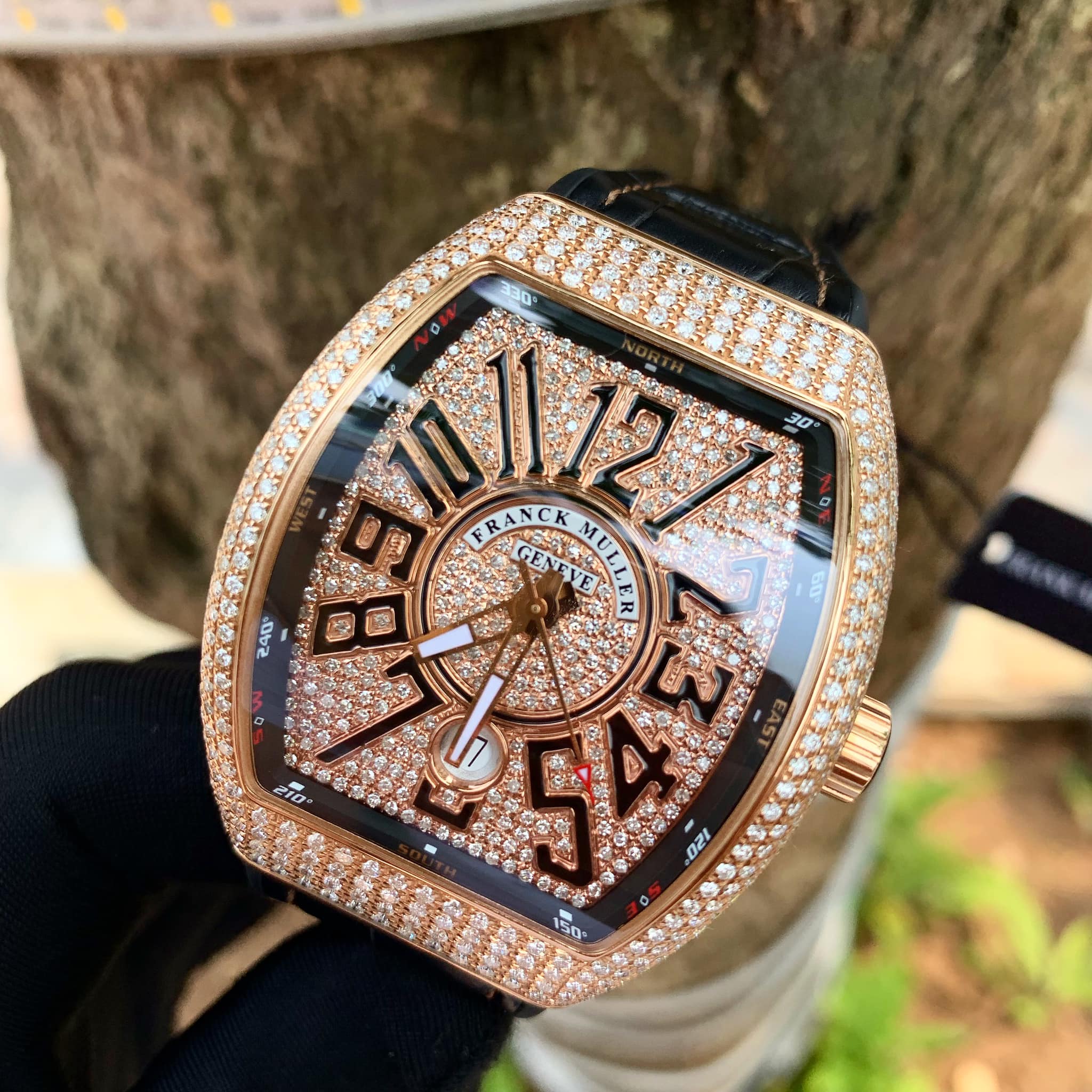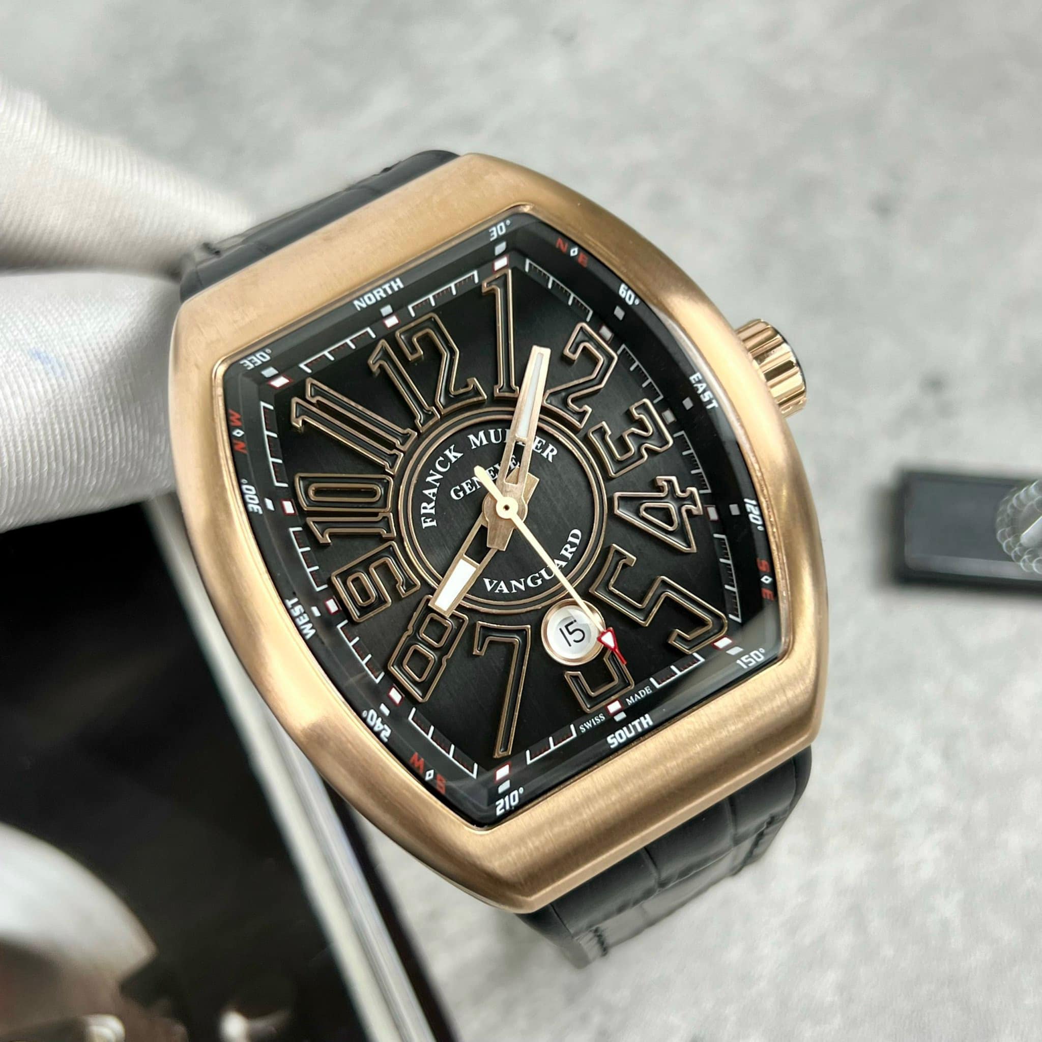 Những mẫu đồng hồ Franck Muller V45 sử dụng vàng hồng 18K, như Vanguard Classical V45, Yachting Anchor Skeleton V45, Master Banker V45 và Skeleton V45, đều toát lên vẻ đẹp thanh lịch và cuốn hút. Không chỉ vật, chất liệu này còn có độ bền cao, giúp đồng hồ luôn giữ được vẻ sáng bóng theo thời gian, trở thành món phụ kiện hoàn hảo cho những ai yêu thích sự tinh tế và khác biệt.