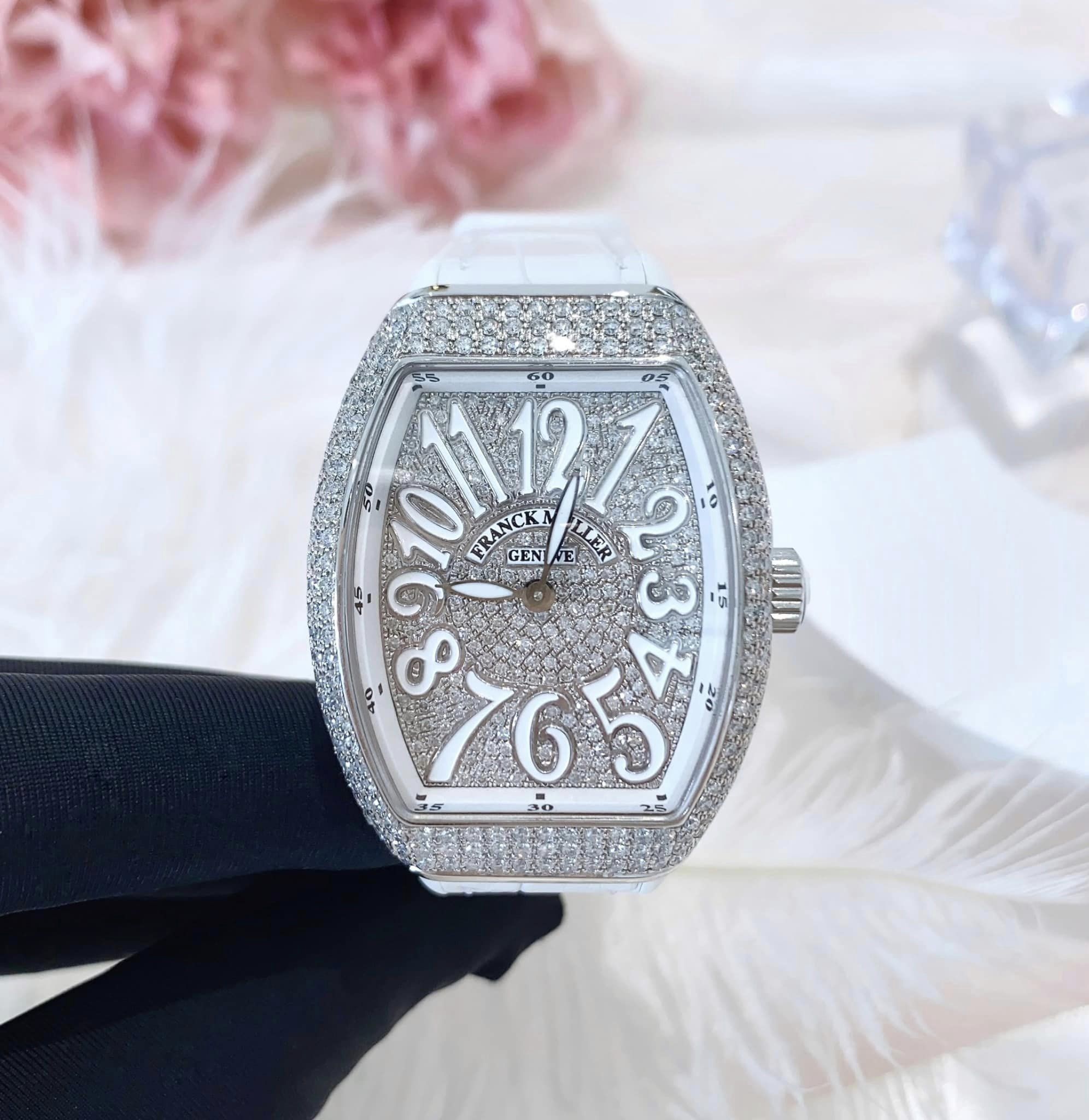Để tô điểm thêm cho vẻ đẹp của những bông hoa hồng trên chiếc đồng hồ Franck Muller nữ này, hãng đã sử dụng những viên kim cương lấp lánh để đính lên mặt số. Với ít nhất 3,55 carat kim cương, chiếc đồng hồ này được đính kim cương một cách tinh tế, bao gồm cả mặt dưới của vỏ, gợi lên một hầm bí mật để cất trữ kho báu của chủ sở hữu.