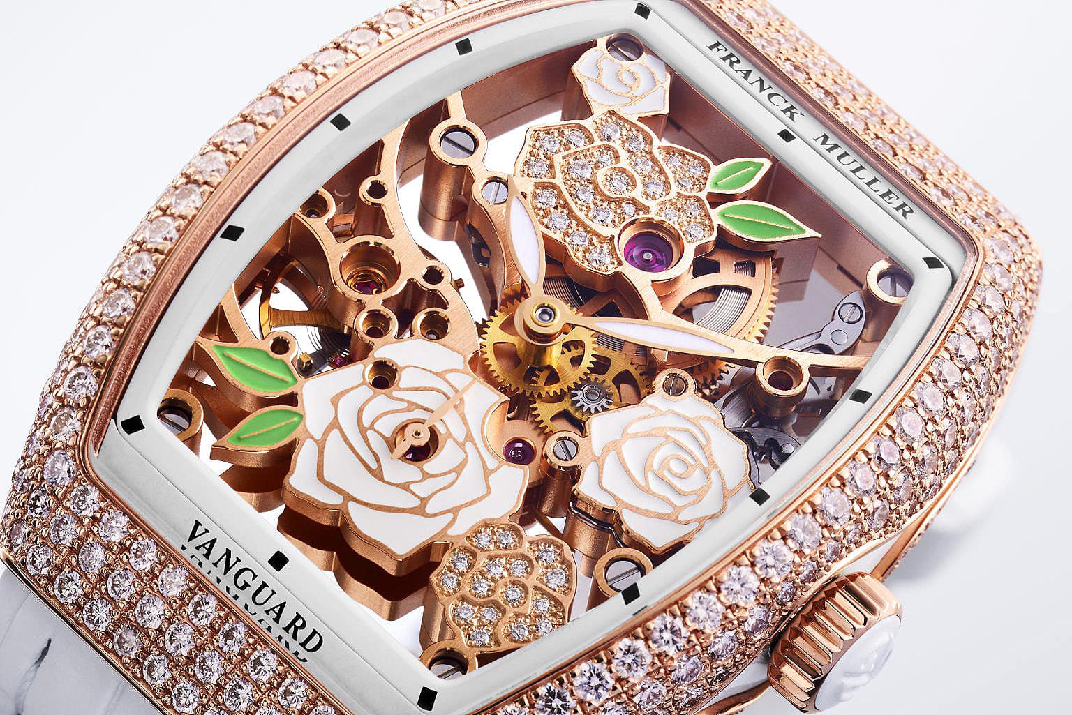 Đồng hồ Franck Muller nữ Vanguard Rose Skeleton Diamonds - Một món quà dành riêng của quý ông Franck Muller dành riêng cho các quý cô, những người yêu thích sự lãng mạn từ những cánh hoa hồng.