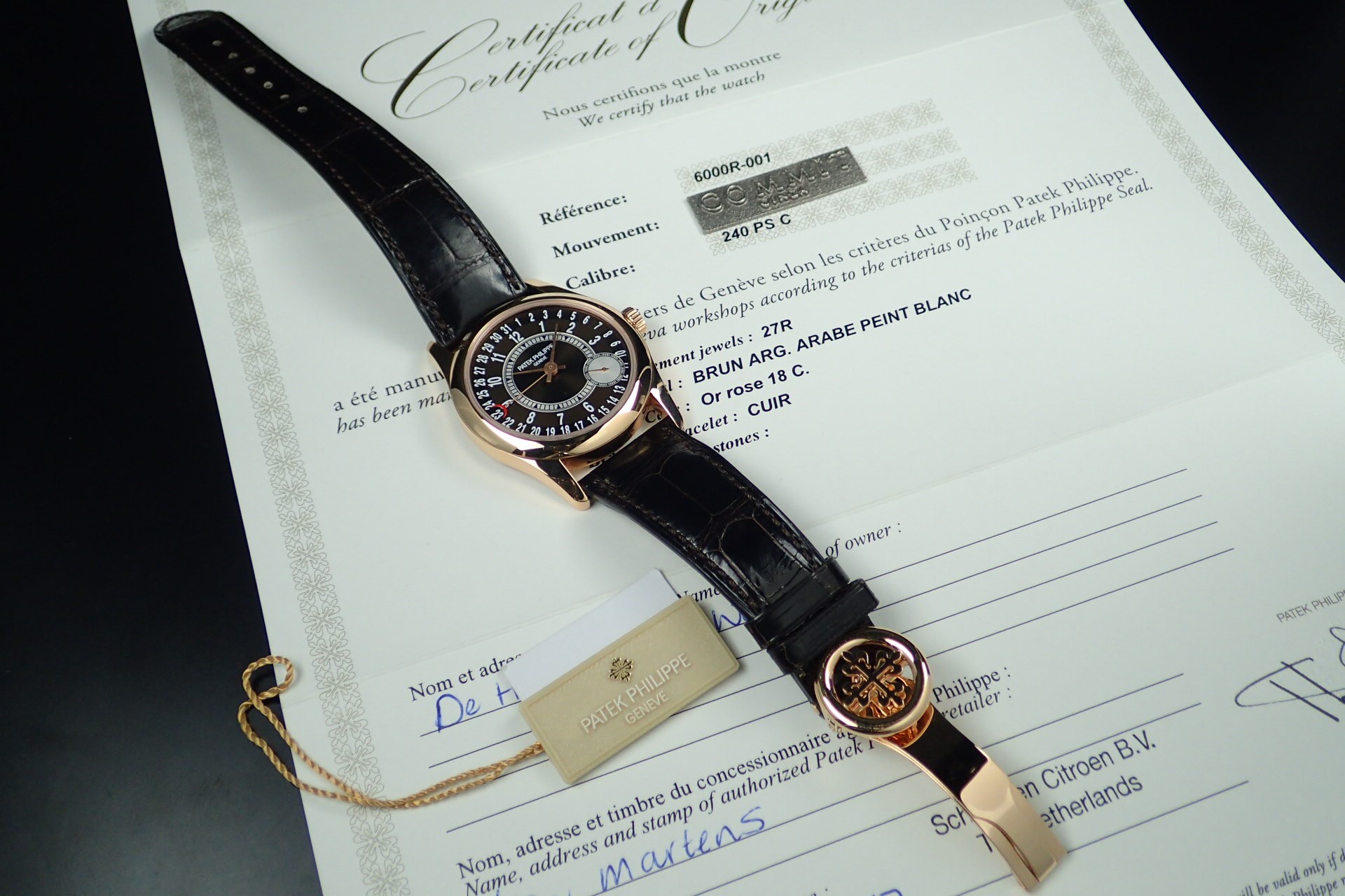 Các chi tiết bên trong chiếc đồng hồ Calatrava Rose Gold 6000R-001 mới là đắt giá hơn cả. Tông màu nâu bao phủ từ dây đeo vào đến trong mặt đồng hồ. Nổi bật trên đó là các chi tiết màu trắng cùng với bộ kim tông nâu nhạt. Đây là cách phối màu khá khó vì nếu không tinh tế nó sẽ làm người đeo bị già đi. Nhưng mọi thứ đã được Patek Philippe thể hiện một cách khéo léo và cầu kỳ. Đẳng cấp chế tạo không dễ gì có được.