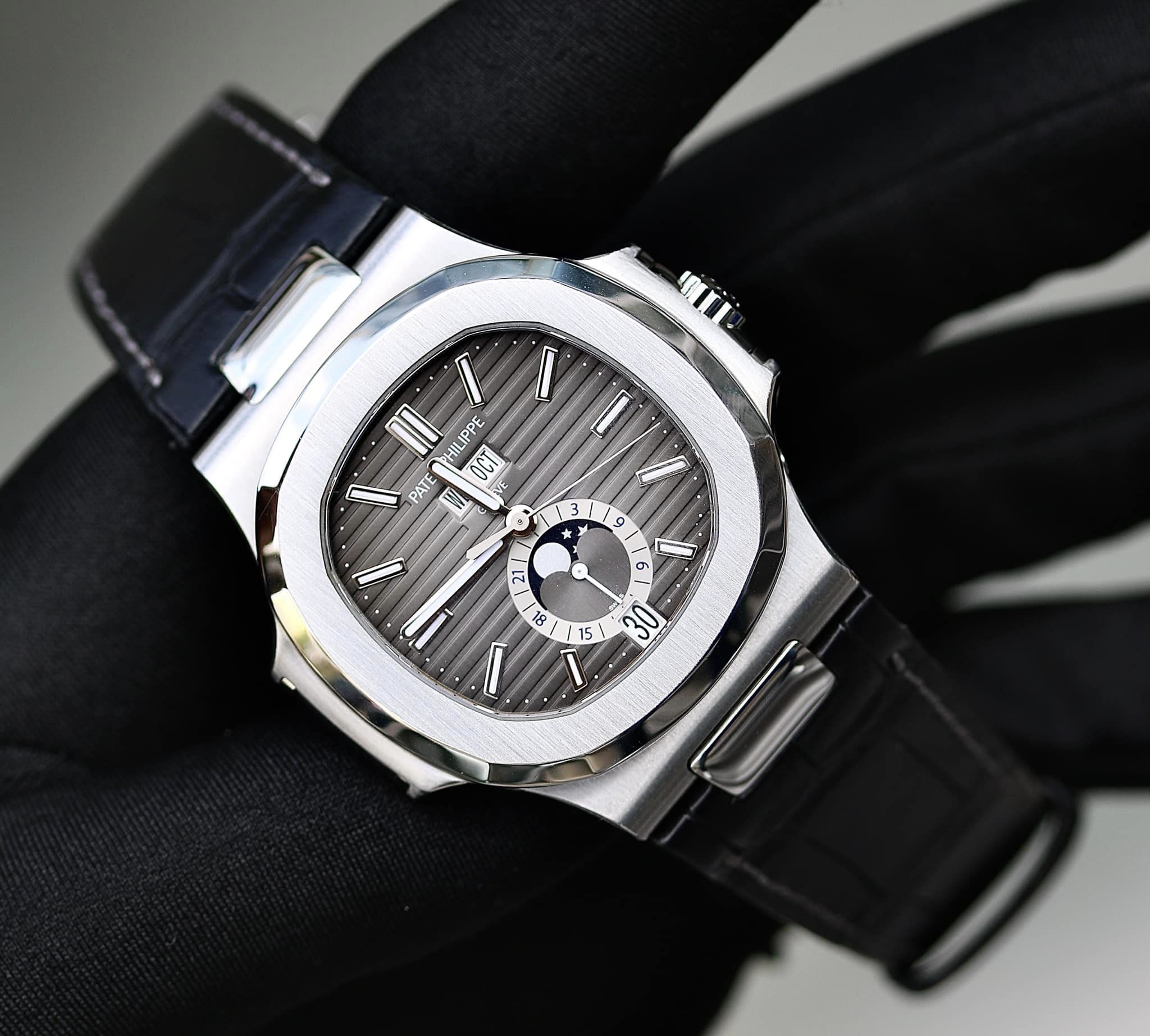 Mặt đồng hồ Patek Philippe có vẻ ngoài cứng cáp nhưng không kém phần sắc sảo. Mặt số được chế tác sắc nét từng chi tiết, các số hiển thị đều nhau và được sắp xếp rất cân đối. Kim đồng hồ được chế tác tinh xảo, với hình dạng khác nhau tạo nên sự cân đối, chuyển động trơn tru, Không chỉ vậy, hãng cũng rất chú trọng đến sự chính xác từ kích thước đến trọng lượng.