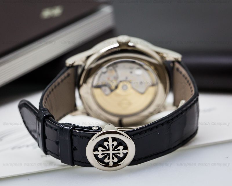 Tổng thể Complications 5396G-011 là sự kết hợp hài hòa giữa hai tông màu đen - trắng. Phần dây da cá sấu tự nhiên được thuộc và đánh bóng kỹ càng mang tới cho chiếc dress watch này một diện mạo khá cổ điển. Mặt đồng hồ mang sắc trắng tinh khôi, không quá cầu kỳ nhưng vẫn để lại ấn tượng mạnh mẽ. Các mốc số được cách điệu bằng vạch chỉ giờ phủ dạ quang, vừa mới lạ lại rất dễ nhìn.