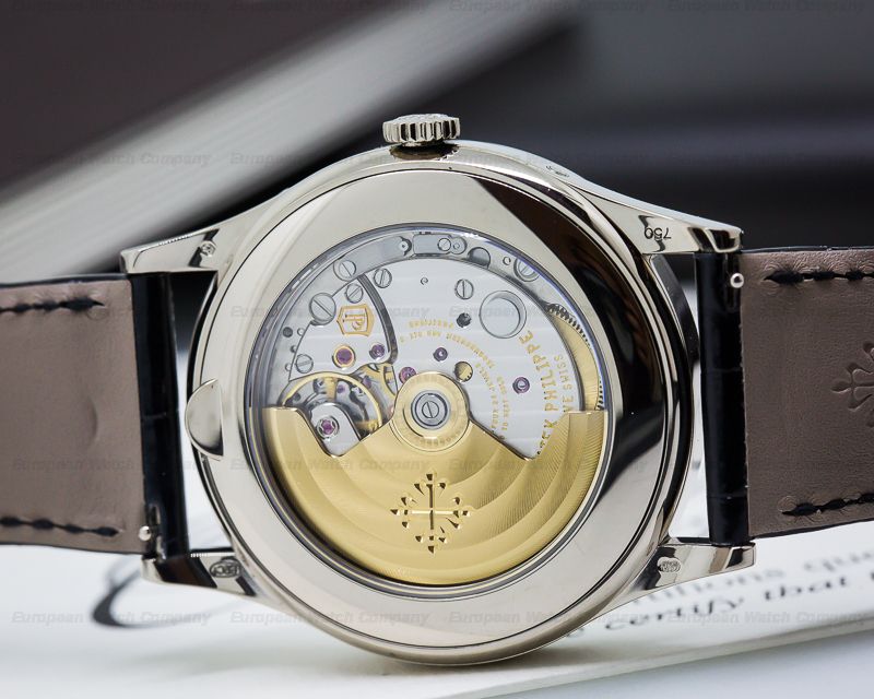 Bộ vỏ của Complications 5396G-011 là chi tiết khá đắt giá. Những ai không biết sẽ hiểu lầm đây là chất liệu thép không gỉ. Nhưng thực ra đó chính là vàng trắng nguyên khối 18k đắt đỏ. Ngay cả vành và núm khóa của Complications 5396G-011 cũng là vàng trắng. Chúng được cắt tạo hình tỉ mỉ và đánh bóng để tăng độ bóng bảy, sang trọng.