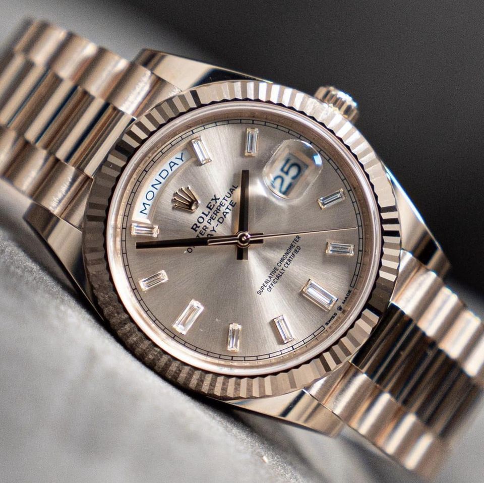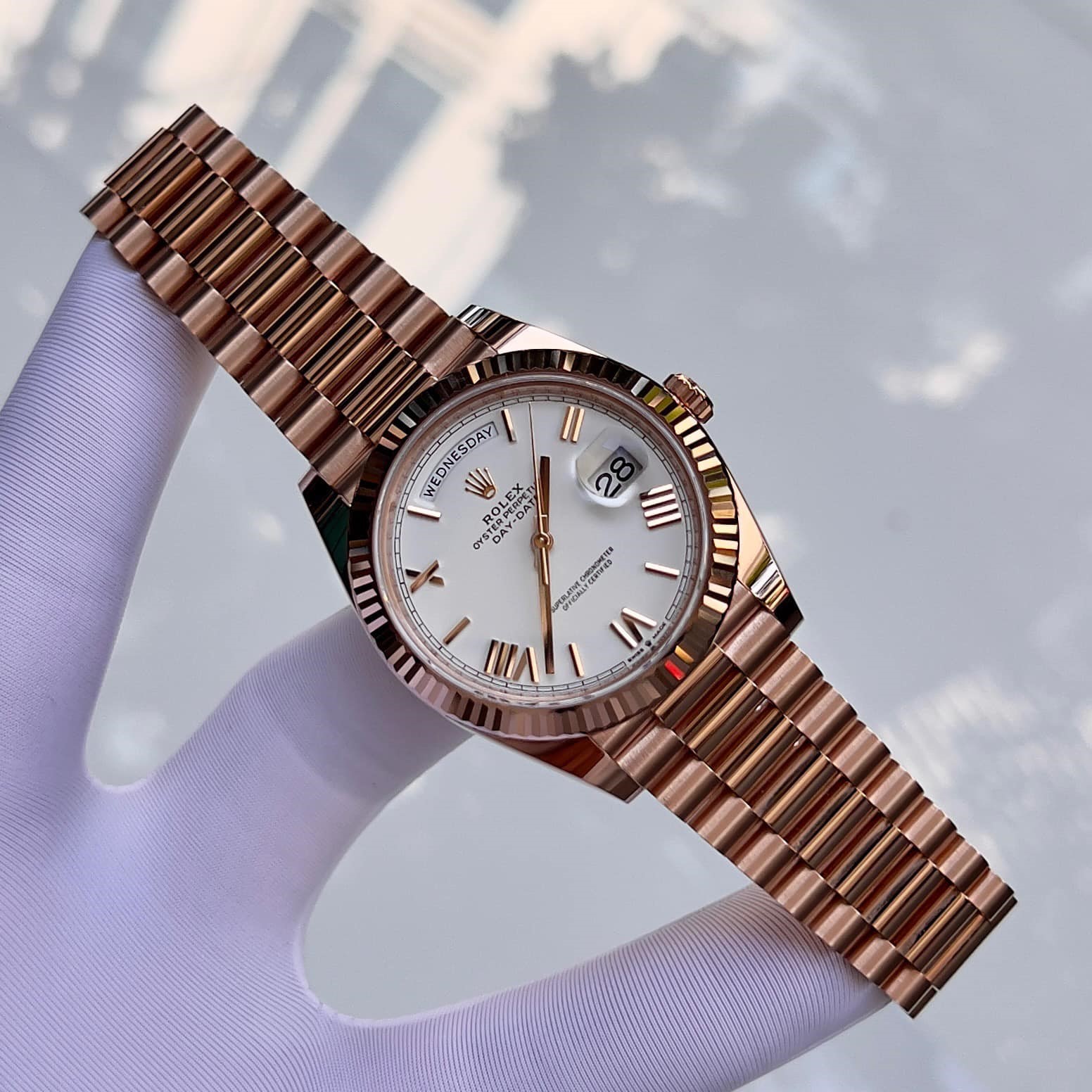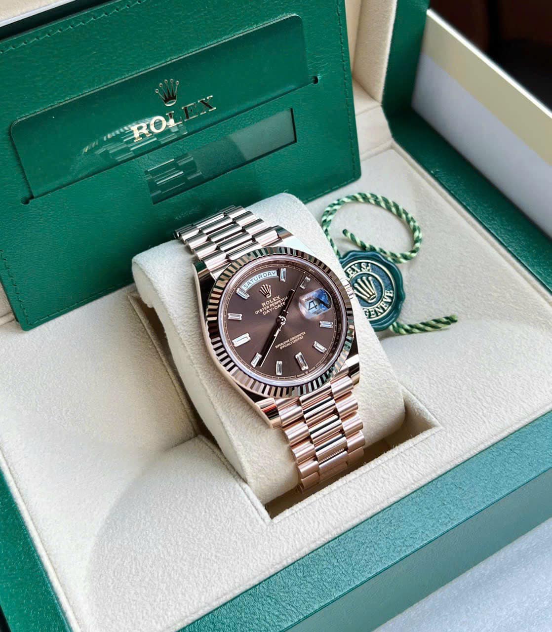 Sở hữu kích thước mặt đồng hồ đường kính 40mm, chiếc Rolex Oyster Perpetual Day-Date 228235 là sự lựa chọn hàng đầu. Chiếc đồng hồ là kiệt tác nghệ thuật trong ngành đồng hồ cao cấp.