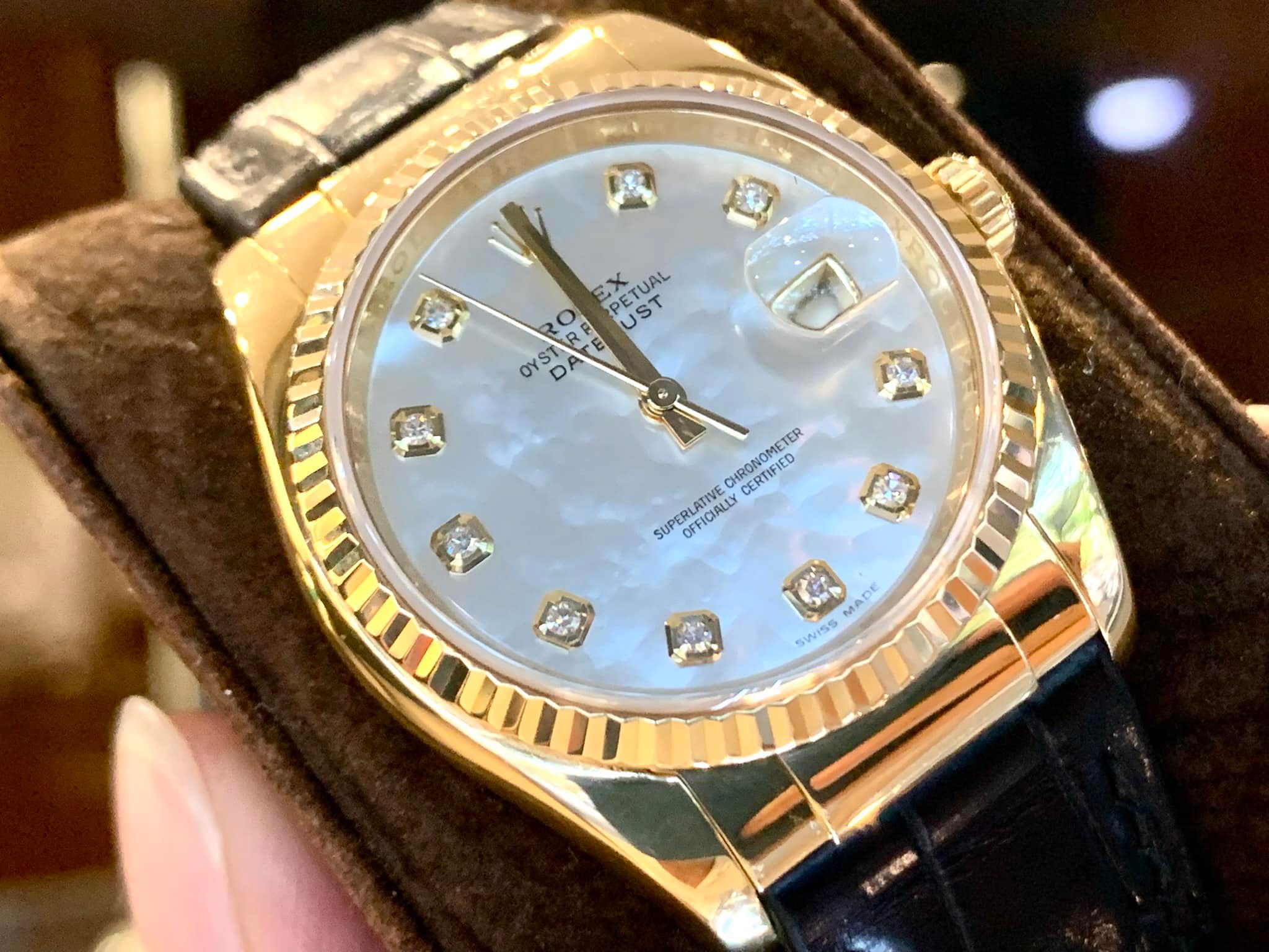 Rolex Datejust dây da là một trong những mẫu đồng hồ mang đến phong cách cổ điển đầy đẳng cấp. Không chỉ có thiết kế sang trọng, mẫu đồng hồ này còn toát lên vẻ thanh lịch và tinh tế, làm nổi bật phong cách của người đeo.