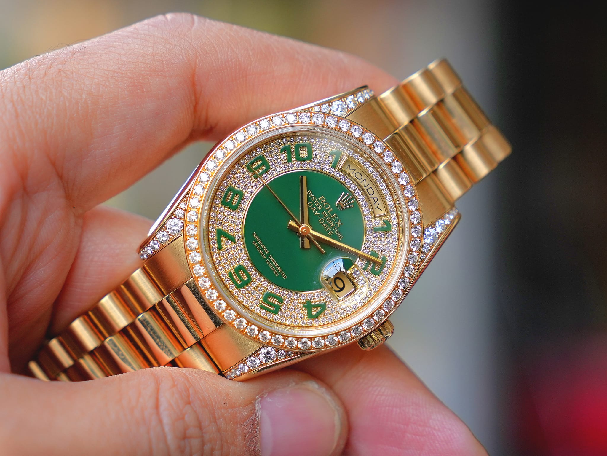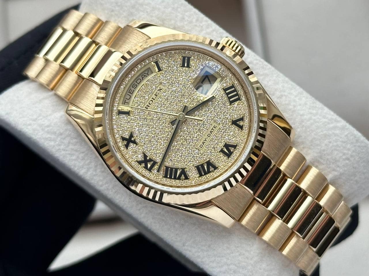 Rolex 18238 Day-Date President cọc kim cương vàng khối 18k |