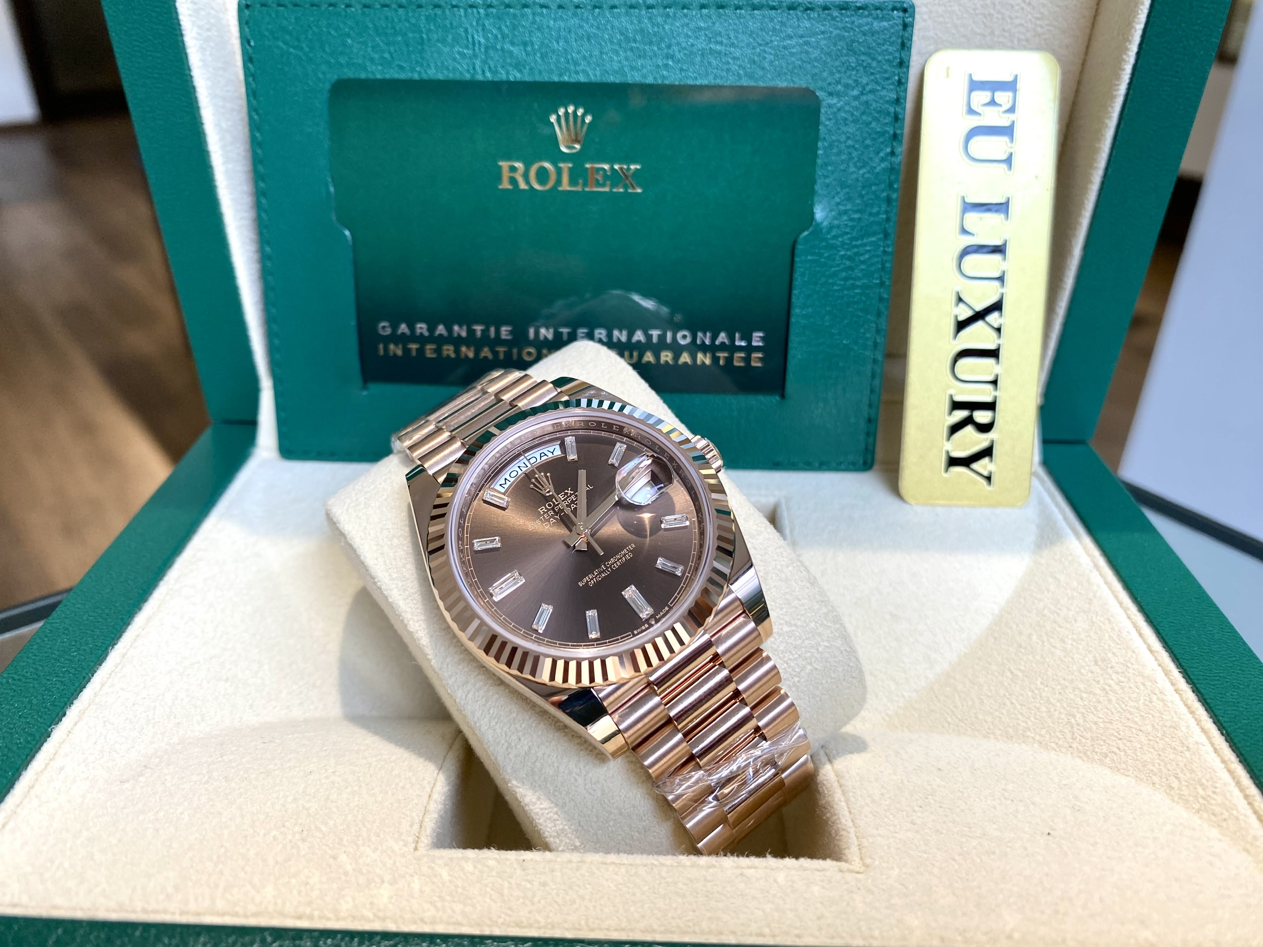 EU Luxury tin rằng, những sự đầu tư nghiêm túc luôn mang lại thành quả xứng đáng. Giống như cách mà Rolex đã đầu tư cho đồng hồ Rolex Daydate hay bất kỳ sản phẩm nào khác của mình. Để từ khi chi tiết máy cuối cùng được ghép vào, chúng đều trở thành những kiệt tác thời gian, những “cỗ máy không tuổi” sống cùng năm tháng. Để khi nhắc đến Rolex, ta luôn có cảm giác được sống giữa dòng chảy của quá khứ, hiện tại và cả tương lai.