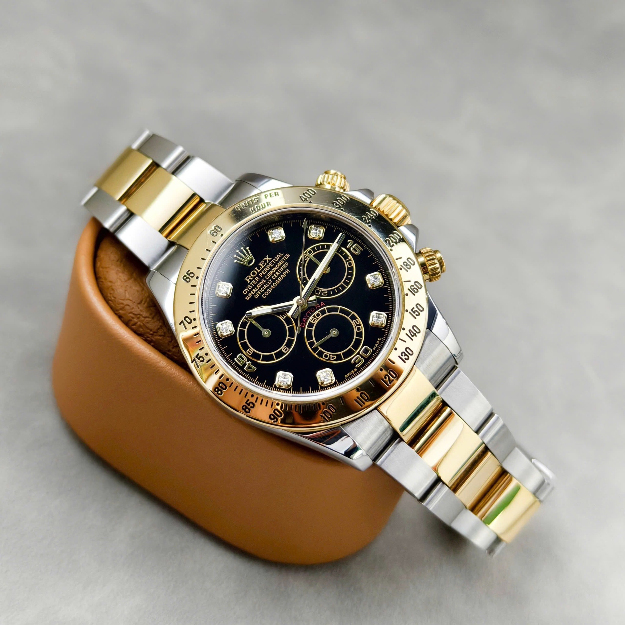 Daytona mang vẻ đẹp cuốn hút với mặt số tinh tế và viền bezel độc đáo. Phong cách mạnh mẽ, thể thao kết hợp cùng sự sang trọng đã biến chiếc đồng hồ này thành lựa chọn hoàn hảo cho những quý ông yêu thích sự nam tính và đẳng cấp.
