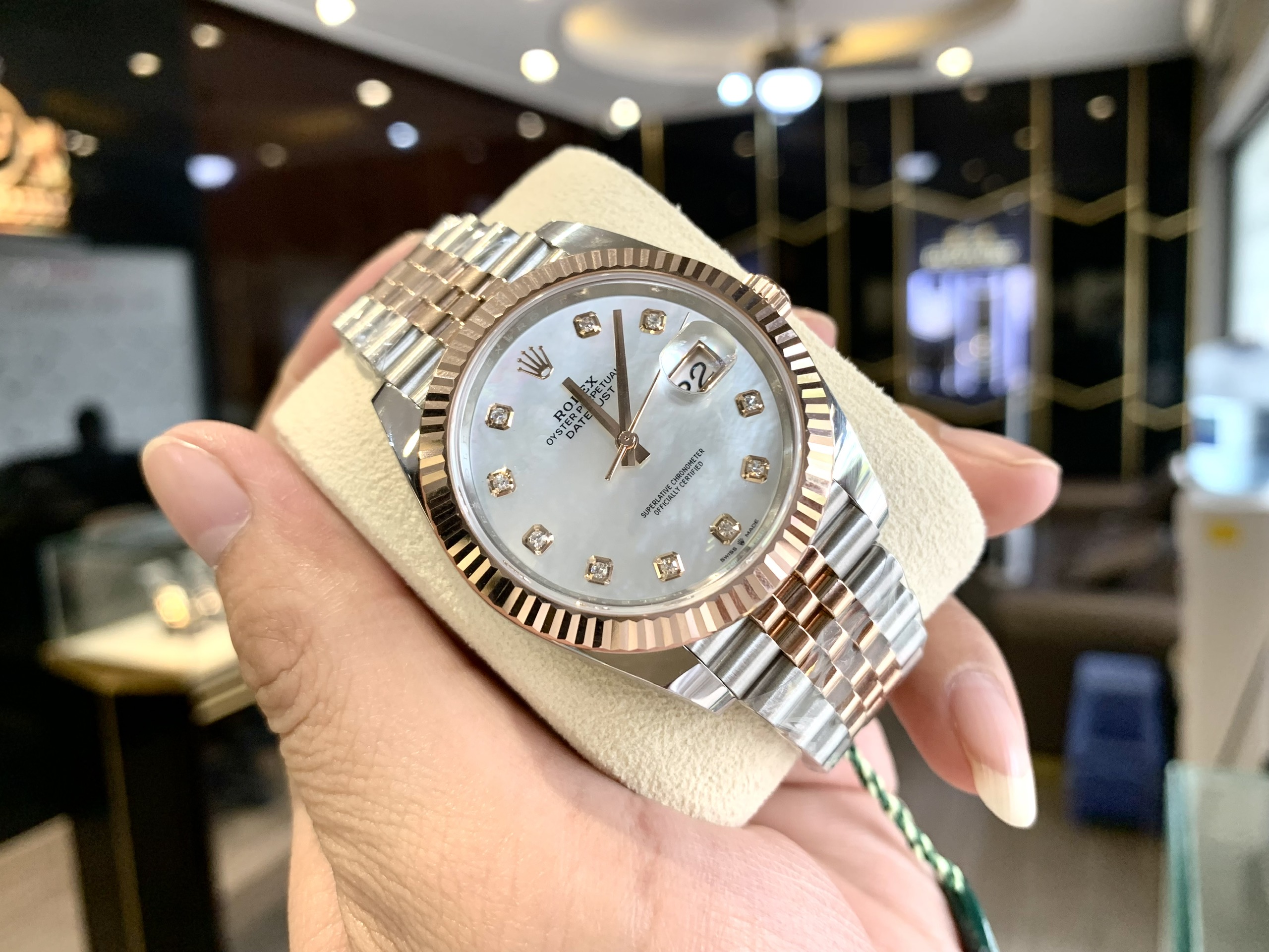 Đây là thiết kế sang trọng và quý phái trong bộ sưu tập đắt giá của Rolex. Đồng hồ Rolex Datejust 41mm 126331 dây Jubilee được chế tạo từ vàng Everose và thép độc quyền của thương hiệu. Lớp vỏ có khả năng chống thấm nước ở độ sâu 330 feet. Mặt đồng hồ có size 41mm, phù hợp với đa số kích thước cổ tay của đàn ông.