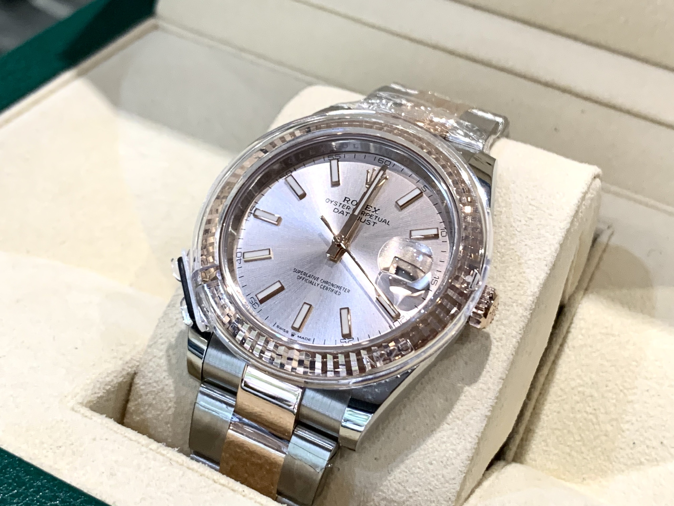 Mặt đồng hồ được thiết kế bằng công nghệ chải tia, khi có ánh sáng chiếu vào rất bắt sáng. Đồng thời, khi nhìn vào đồng hồ Rolex Datejust 41mm Ever Gold Oyster 126331 sẽ thấy sự độc lạ với sự phối màu giữ vàng hồng nhạt với thép trắng. Núm vặn vàng hồng giúp chống thấm nước hiệu quả. Size 41mm phù hợp với mọi kích cỡ cổ tay của nam giới. Chi tiết ấn tượng của đồng hồ Rolex vàng hồng là sự kết hợp công nghệ và thủ công bậc nhất. Bộ máy của đồng hồ Rolex Datejust 41mm Ever Gold Oyster 126331 có thể vận hành trong 72h đồng hồ.