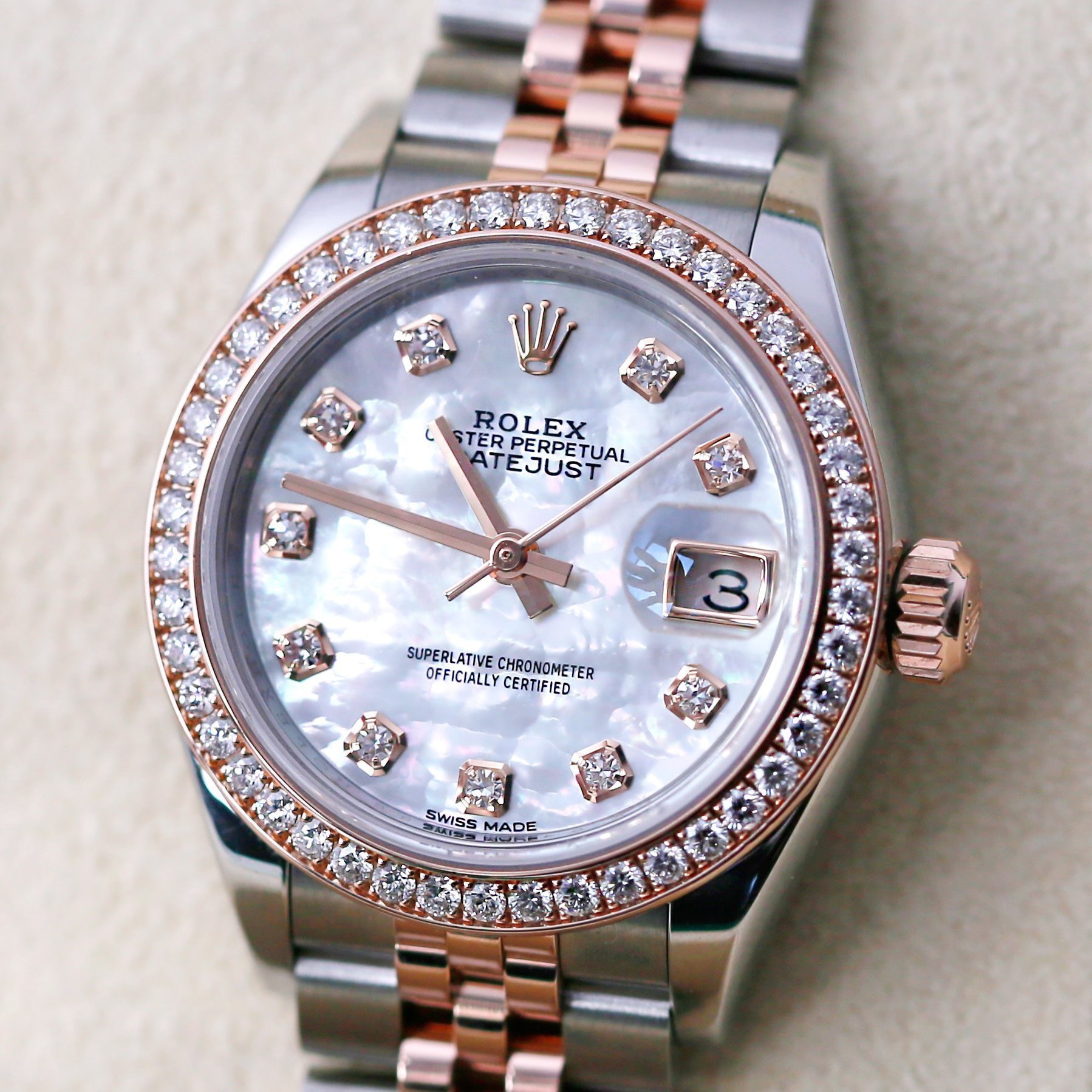 Đồng thời ở chiếc Rolex Oyster Perpetual Lady-Datejust mã 279381-0013 cũng được sử dụng bộ máy Calibre 2236. Hoàn thiện sản phẩm bằng dây đeo Jubilee giúp tăng thêm phần sang trọng. Mức giá tham khảo cho các bạn là 425 triệu đồng tại EU Luxury.