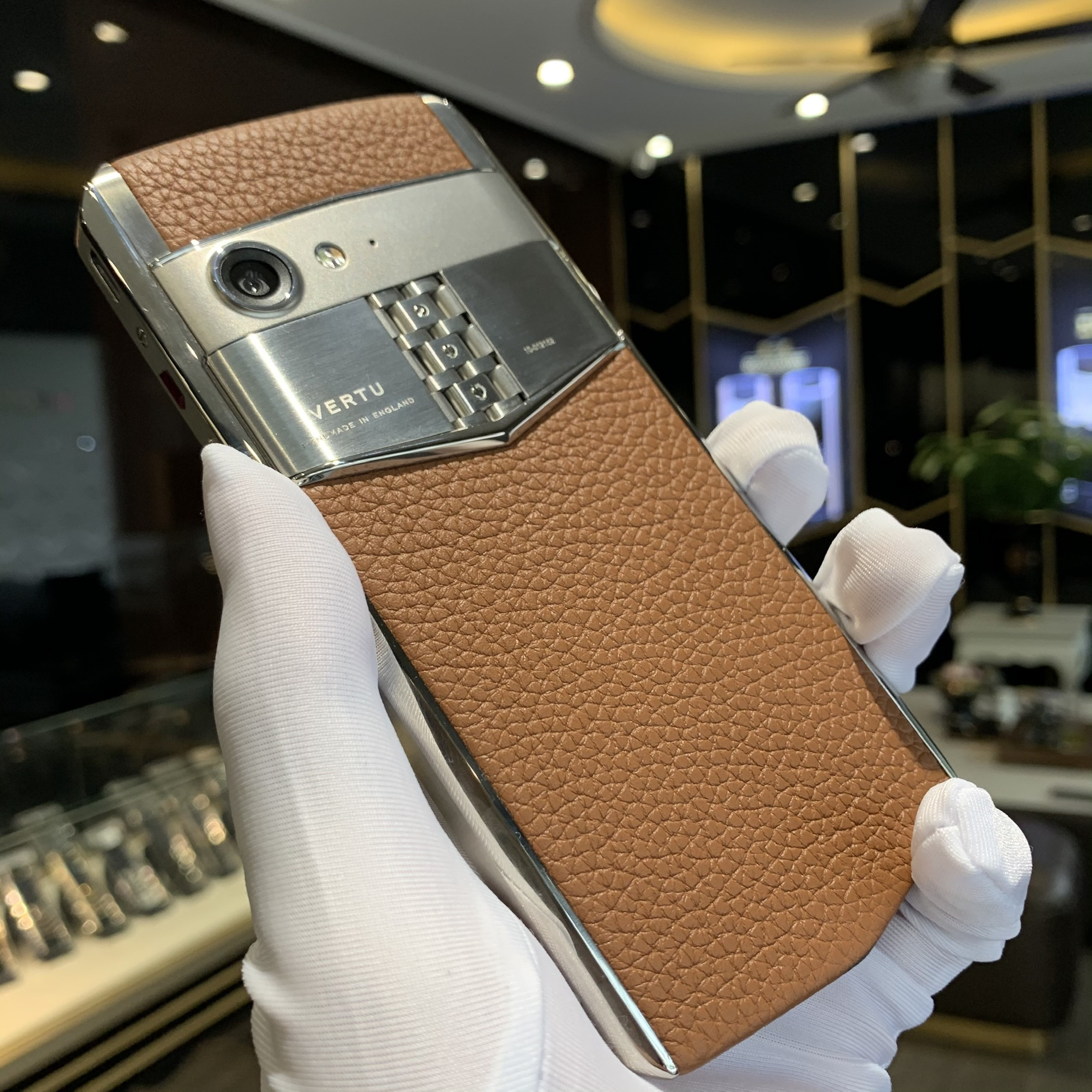 Đầu tiên chúng ta sẽ cùng tìm hiểu về chiếc điện thoại Vertu Aster P Brown của hãng. Sản phẩm được bày bán trên thị trường với mức giá chỉ 95 triệu đồng.