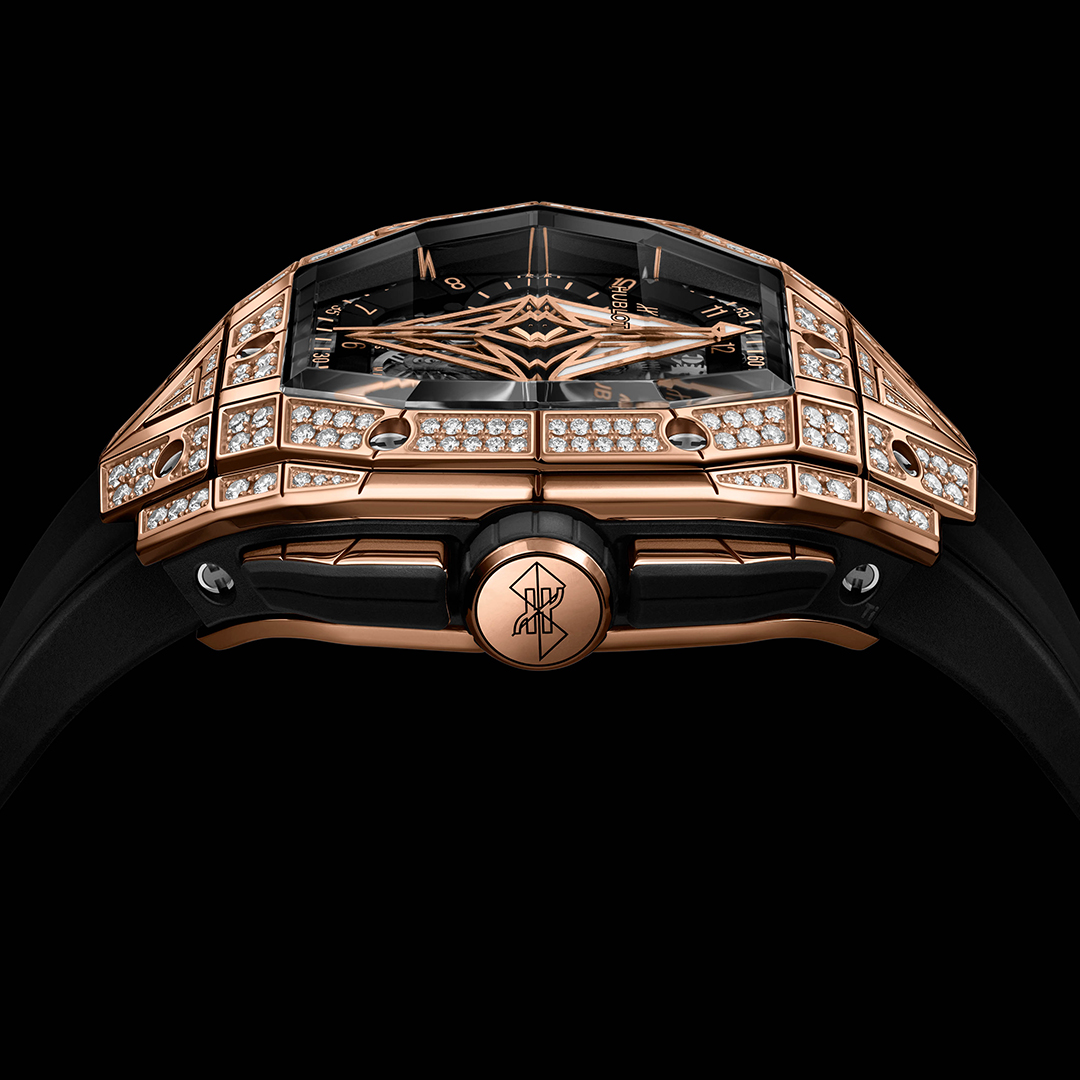 Phiên bản này đã gây chấn động cho giới đồng hồ cao cấp ngay khi mới ra mắt. Vành đồng hồ được chế tạo từ vàng 18K vô cùng tỉ mỉ. Trên vành đồng hồ được gắn 96 viên kim cương đắt giá. Các ốc vít hình chữ H được nối tạo thành lục giác tạo nên vẻ đẹp trừu tượng.