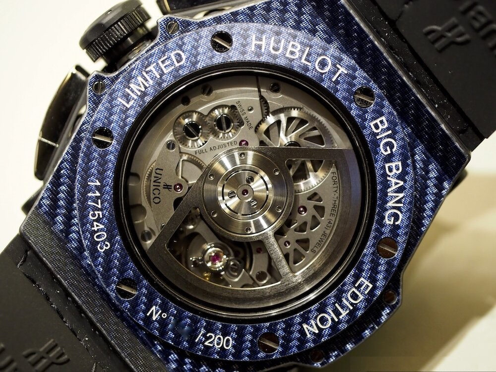 Phần vỏ đồng hồ được sử dụng chất liệu màu xanh texalium độc quyền của Hublot. Đây là một trong những chất liệu có kết hợp giữ sợi thủy tinh và nhôm, bên ngoài phủ thêm một lớp carbon mỏng. Nhờ vậy đã giúp đồng hồ giảm đc 100g trọng lượng.