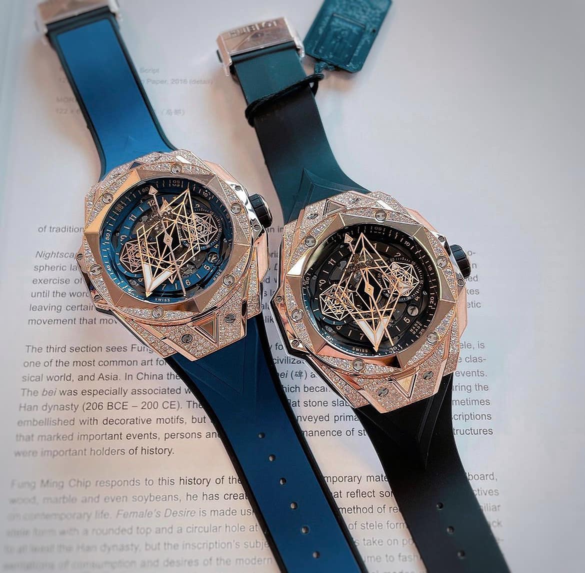 Với thiết kế mới lạ, độc đáo, phiên bản giới hạn 200 chiếc, Hublot Sang Bleu đã để lại những ấn tượng khó phai. Sang Bleu được sáng lập bởi một thợ xăm người Thụy Sĩ, ông là một doanh nhân tài giỏi và có niềm đam mê mãnh liệt với đồng hồ. Công ty Sang Bleu chuyên về các ấn phẩm nghệ thuật đương đại và văn hóa. Đây chính là điểm nhấn phù hợp để kết hợp thương hiệu Hublot.