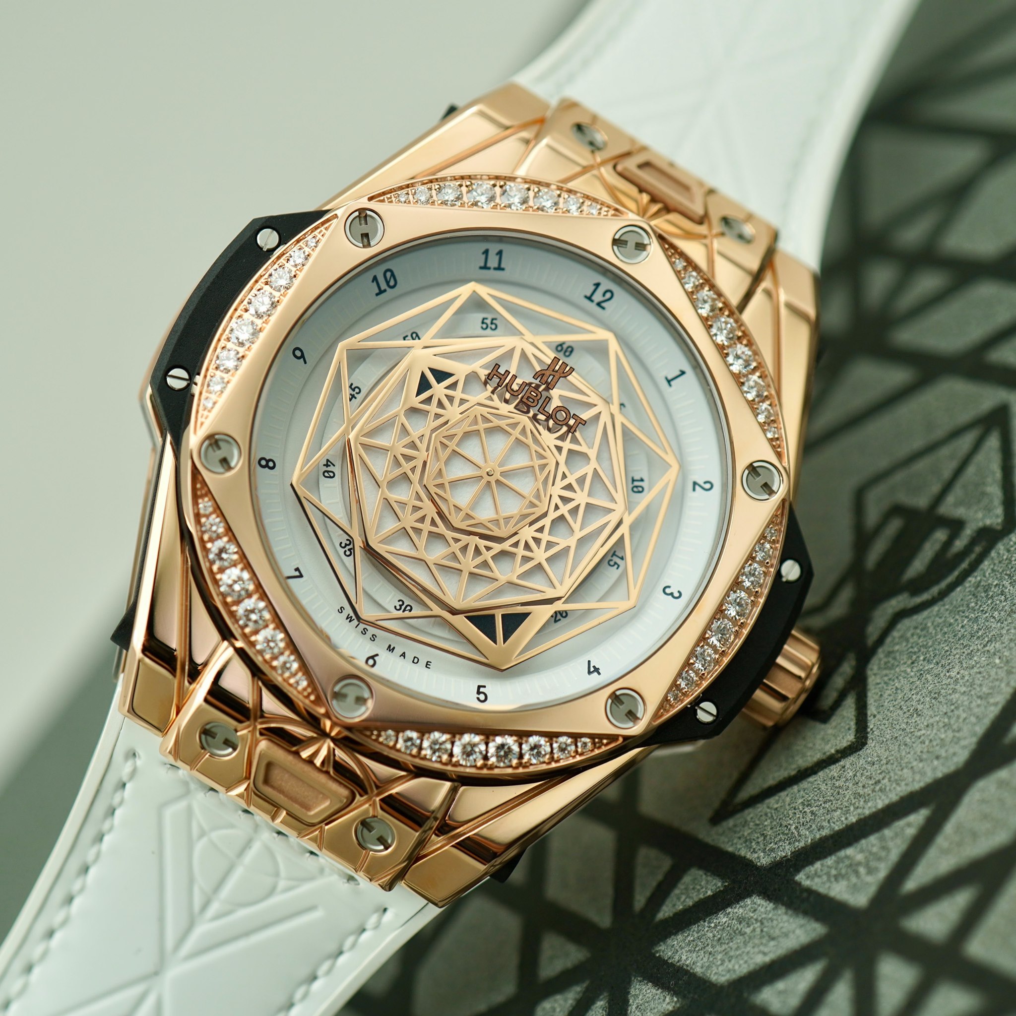 Đầu tiên đó chính là siêu phẩm đồng hồ nữ Hublot Geneve Big Bang One Click King Gold White Diamonds Pave. Sản phẩm được ví von như một kiệt tác đỉnh cao mà Hublot đã từng sản xuất.