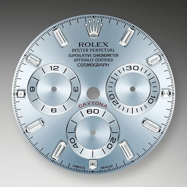 Một phổ màu gần như vô tận các sắc độ và sắc thái đã được hiện thực hóa bằng kỹ thuật tại Rolex. Còn chưa kể về sự phức tạp trong kết cấu mặt số. Một số mẫu có hoạ tiết đá xà cừ, vàng kết tinh hoặc đá thiên thạch. Điều đó vô cùng vô cùng phức tạp đòi hỏi các nhà khoa học, vật lý đầy chuyên môn. Mới có thể từ từ khám phá và hình thành các sắc độ màu sắc cụ thể. Phải trải qua ít nhất ba tháng nghiên cứu và thử nghiệm trong phòng thí nghiệm để tạo ra sắc thái cần thiết.