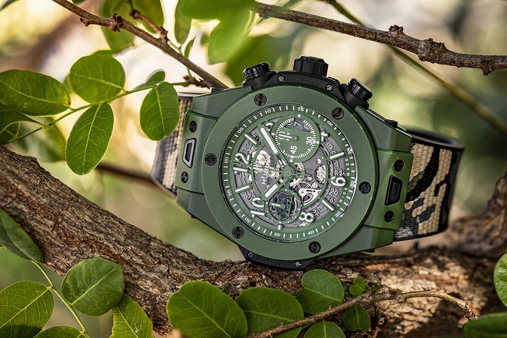 Điểm ấn tượng khiến nhiều người chú ý đến chính là chất liệu của đồng hồ. Thay vì sử dụng chất liệu truyền thống nó được làm từ ceramic màu xanh lục. Màu này được lấy cảm hứng từ sắc tự nhiên của bụi rậm Nam Phi khi hè đến.