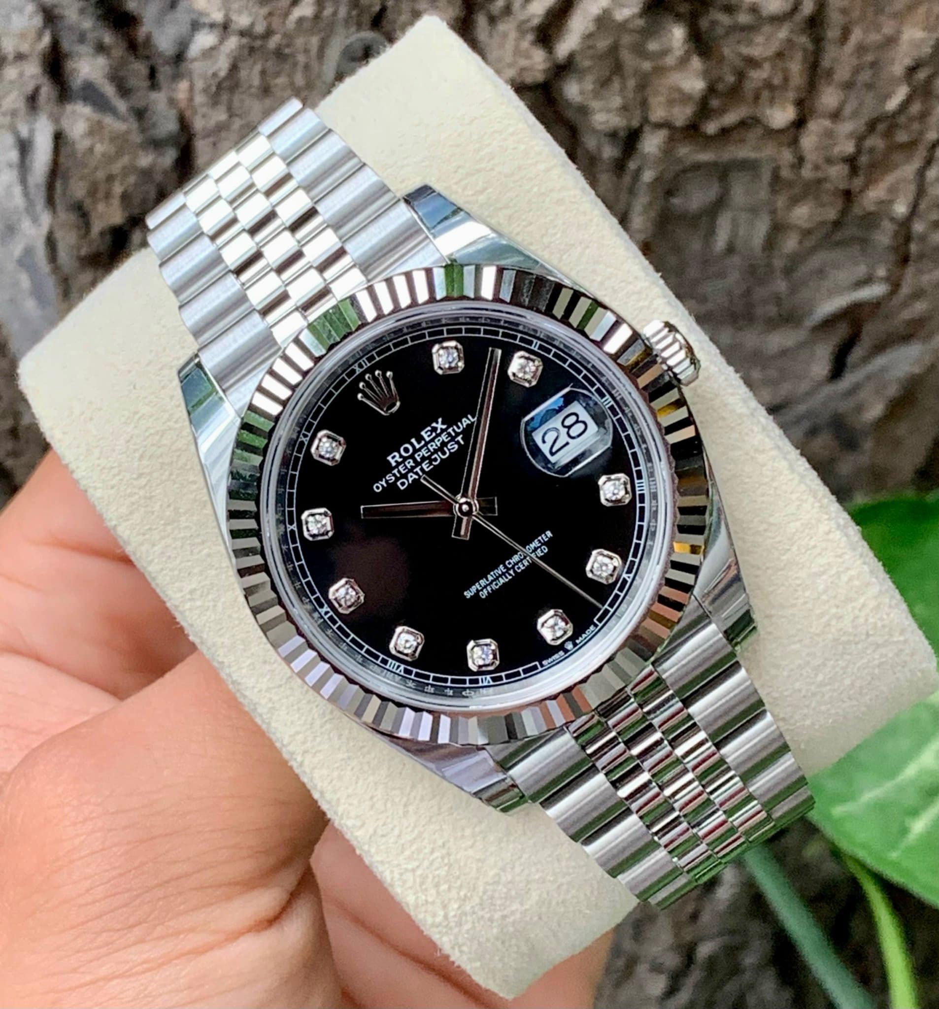 Trước hết đó chính là phiên bản White Gold Steel Black Diamond Dial Fluted Bezel Jubilee của bộ sưu tập. Với thiết kế nổi bật, chiếc đồng hồ là phiên bản được đánh giá tốt nhất với sản phẩm khác cùng dòng.