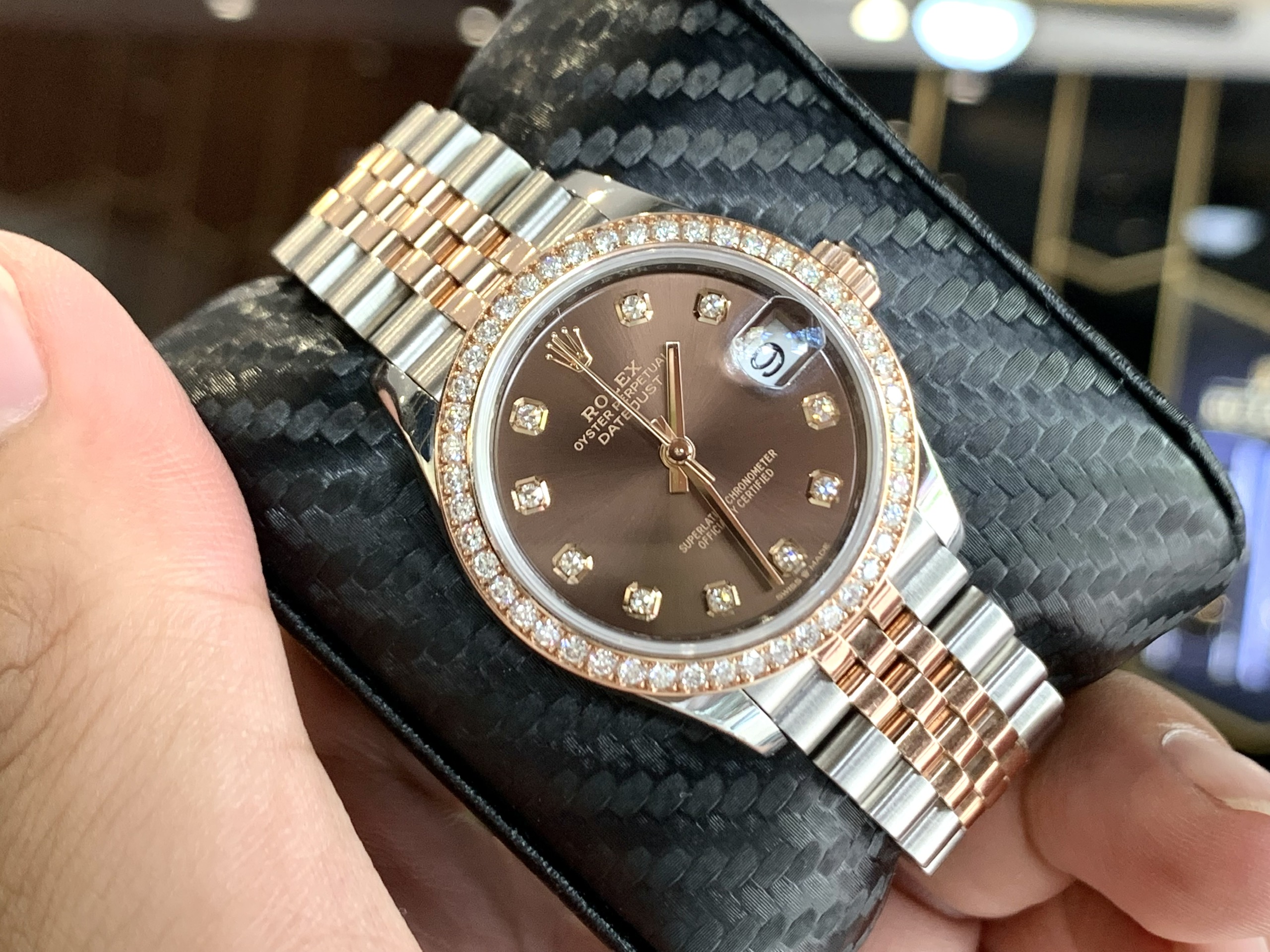 Không chỉ vậy, tô điểm thêm cho sản phẩm đó là những viên kim cương trên vành bezel. Để có thể được sử dụng đòi hỏi những viên kim cương này trải qua quá trình chế tác kỳ công, điêu luyện đến từ nghệ nhân hàng đầu. Cũng vì thế đã ảnh hưởng không nhỏ tới giá cả của mỗi sản phẩm đồng hồ Rolex nữ chính hãng.