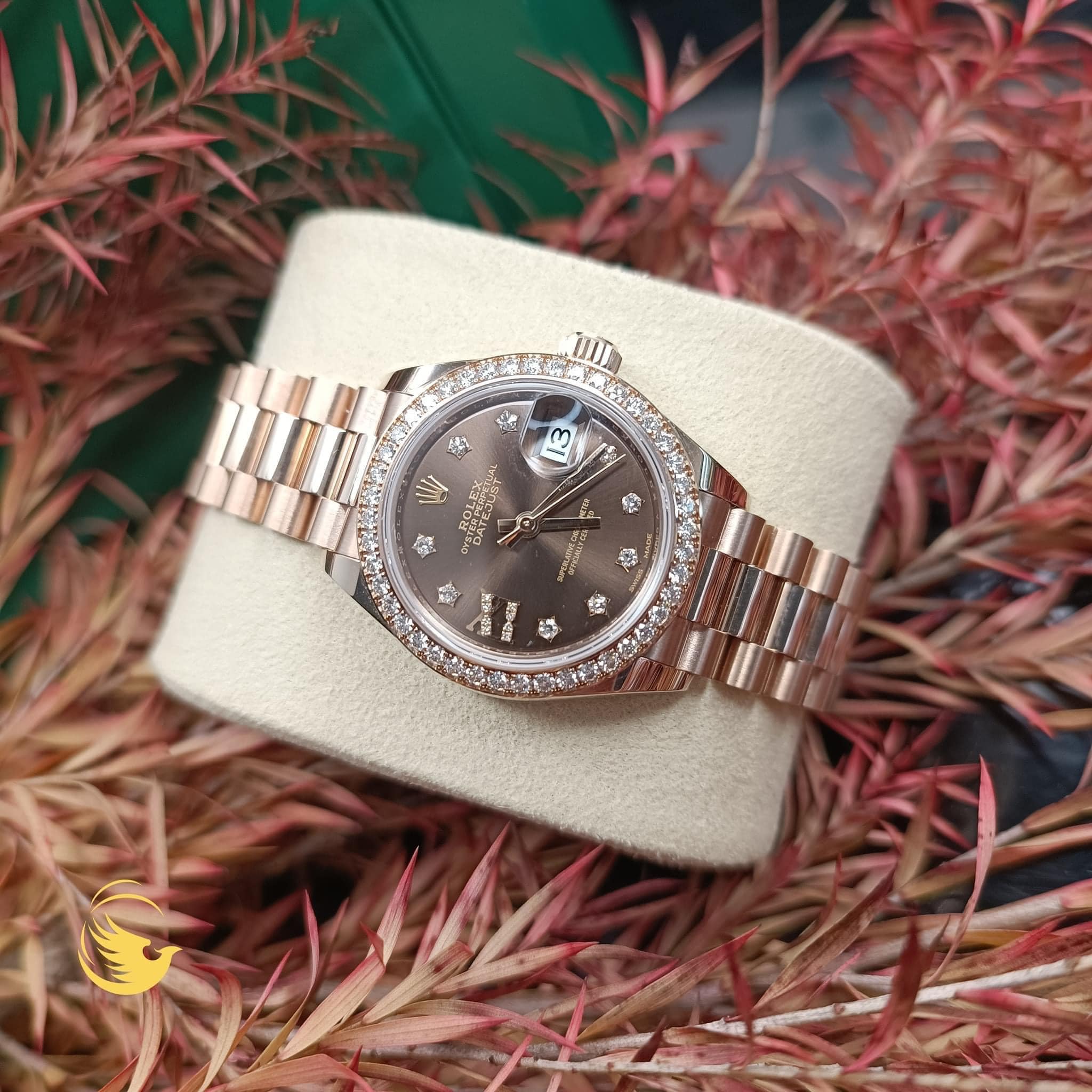 Rolex thường xuyên sử dụng vàng hồng để sản xuất những mẫu đồng hồ ở nhiều dòng sản phẩm khác nhau. Đây là một hợp kim của vàng 18K, trong đó có 76% là vàng, 22% là đồng và 2% bạch kim. Loại vàng này sở hữu màu vàng hồng cực kỳ ấn tượng.