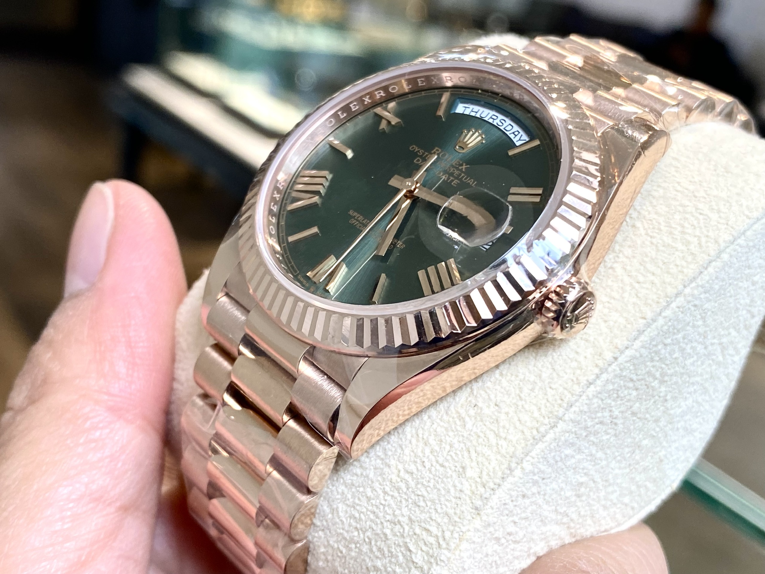 Bên cạnh những sản phẩm trên thì dòng sản phẩm đồng hồ Rolex vàng khối Daydate cũng là một trong những dòng sản phẩm được yêu thích nhất. Đặc biệt là những chiếc đồng hồ Rolex Daydate President.